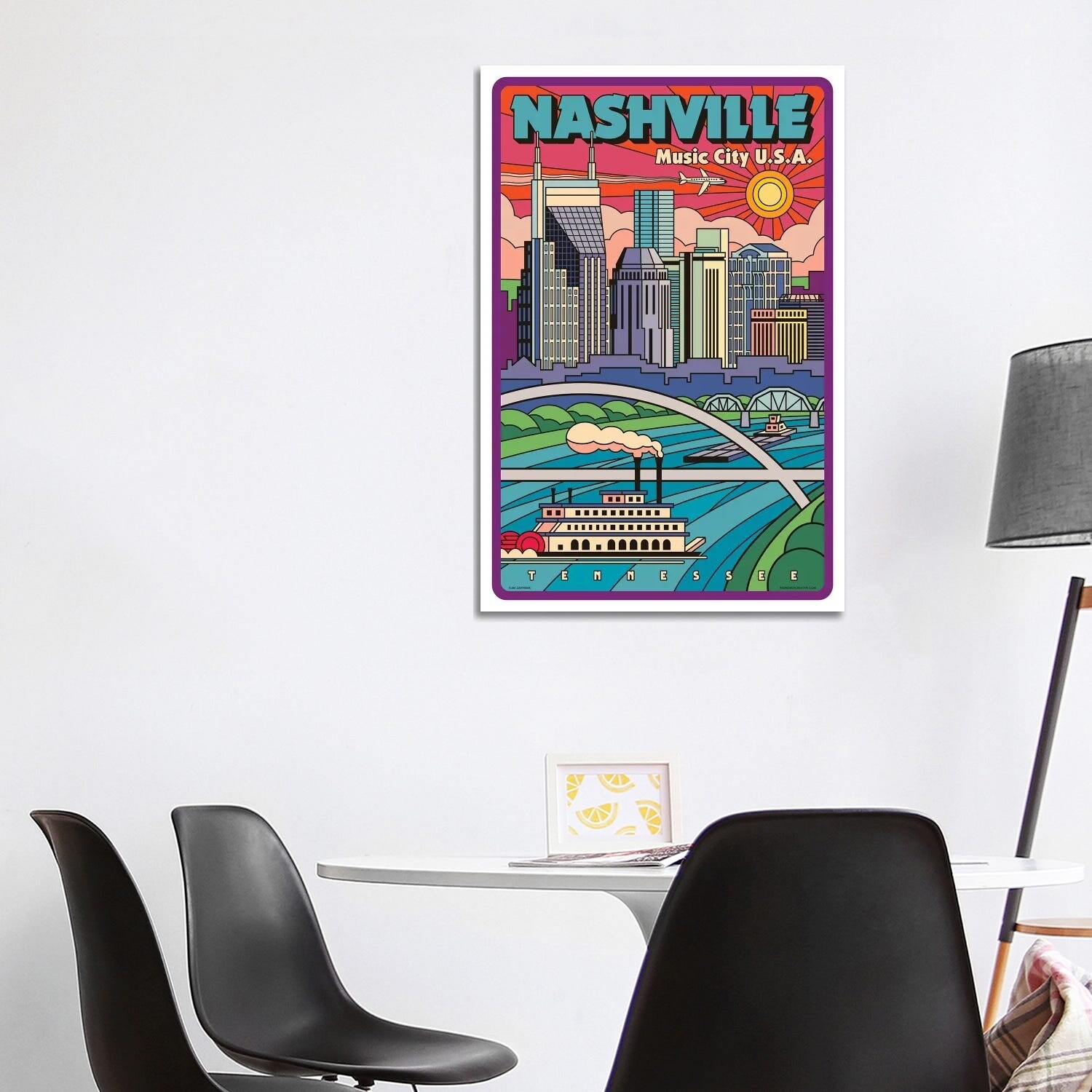 iCanvas "Nashville Pop Art Travel Poster" by Jim Zahniser Canvas Print