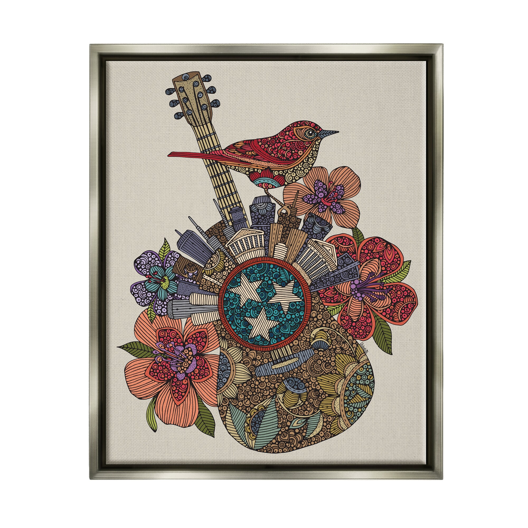 Stupell Nashville Music City Detailed Floral Pattern Guitar Floater Frame, Design by Valentina Harper