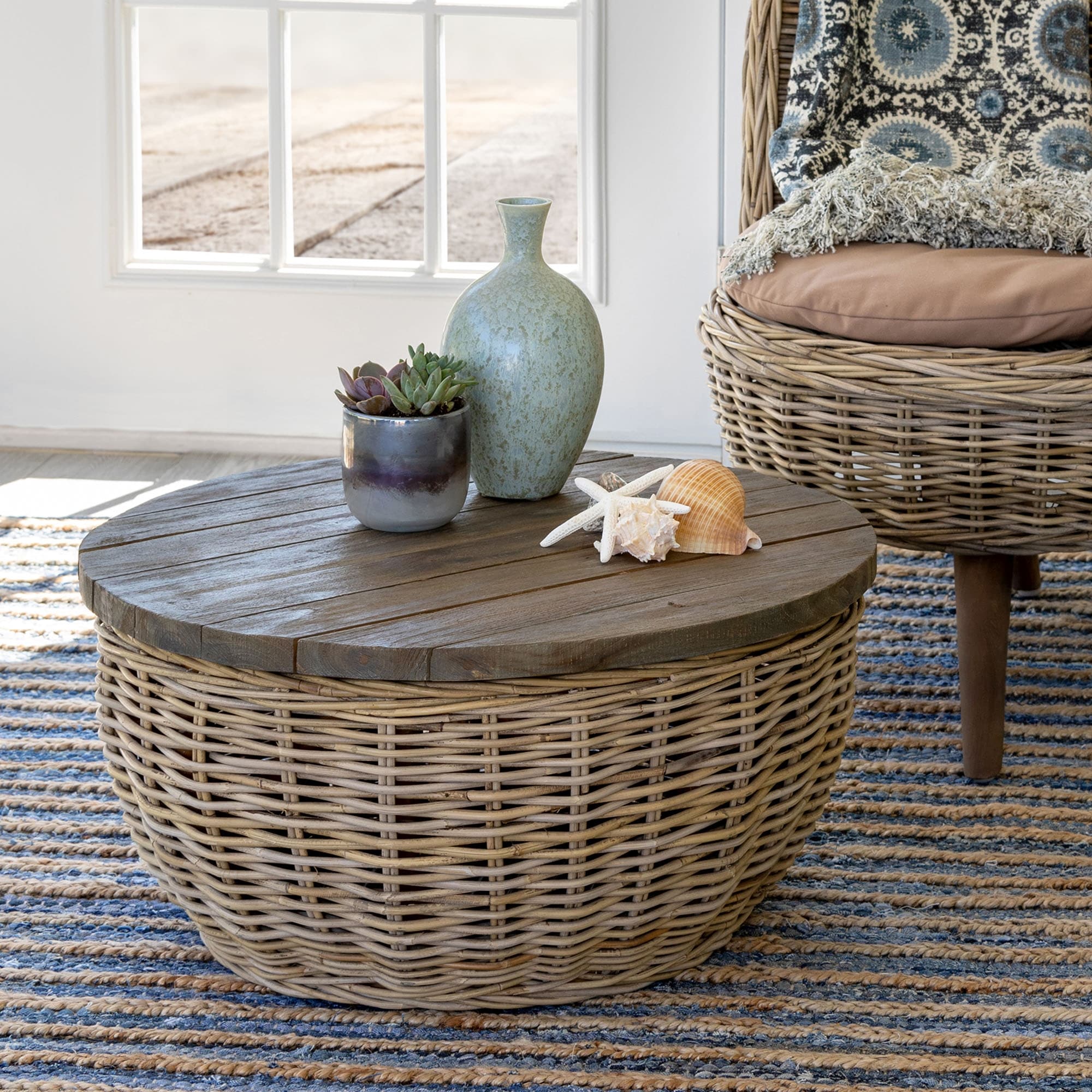 Rattan Coffee Table with Wood Top - Natural - 25.5"L x 25.75"W x 12.75"H