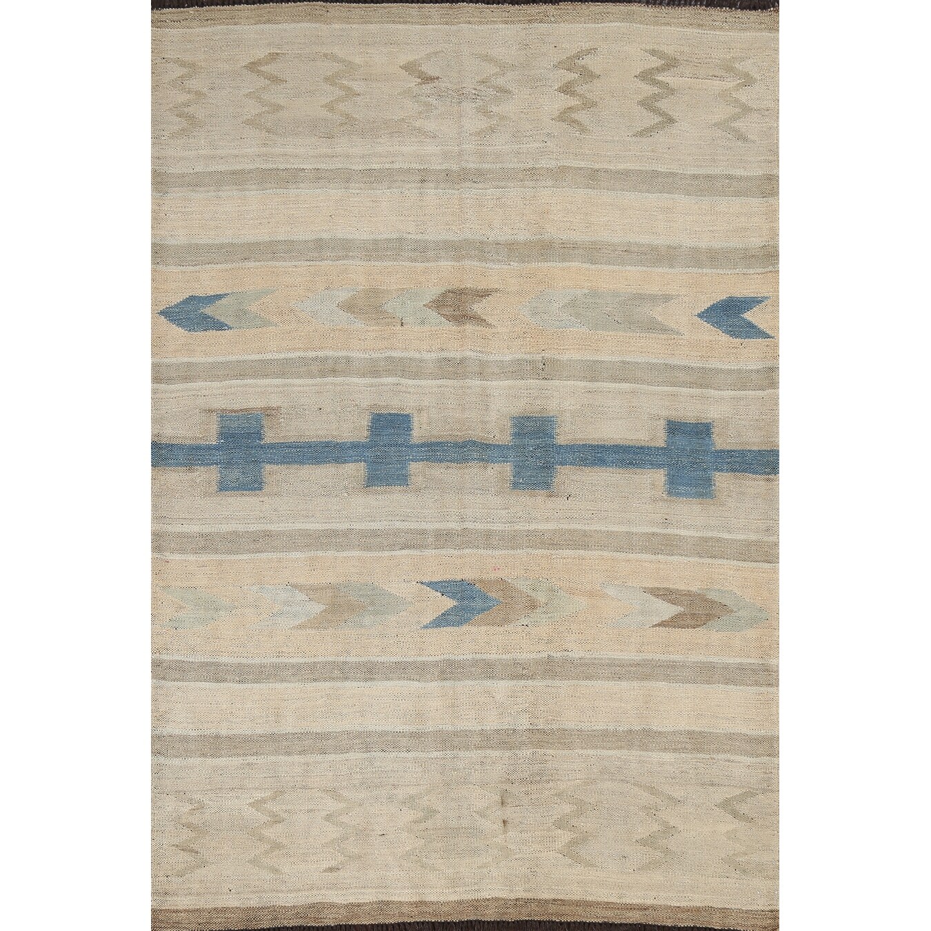 Natural Dye Contemporary Tribal Kilim Area Rug Hand-woven Wool Carpet - 4'11" x 6'7"