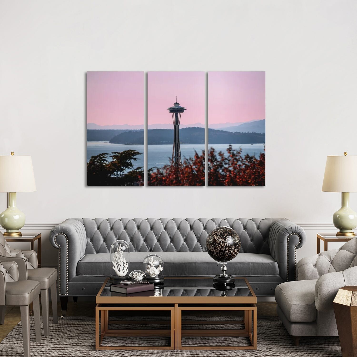 iCanvas "Seattle Sky Pastel Space Needle Sunset" by Nature Magick 3-Piece Wall Art Set