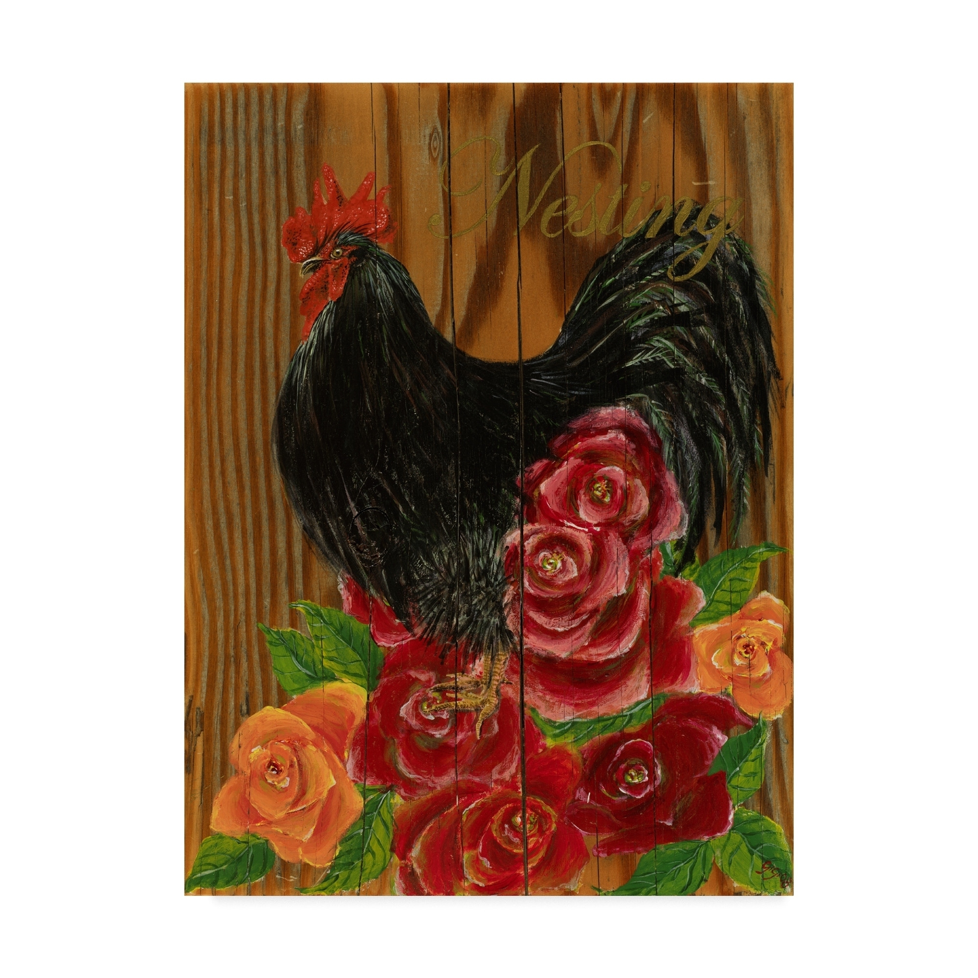 Gigi Begin 'Nesting Black Rooster' Canvas Art - Multi-color