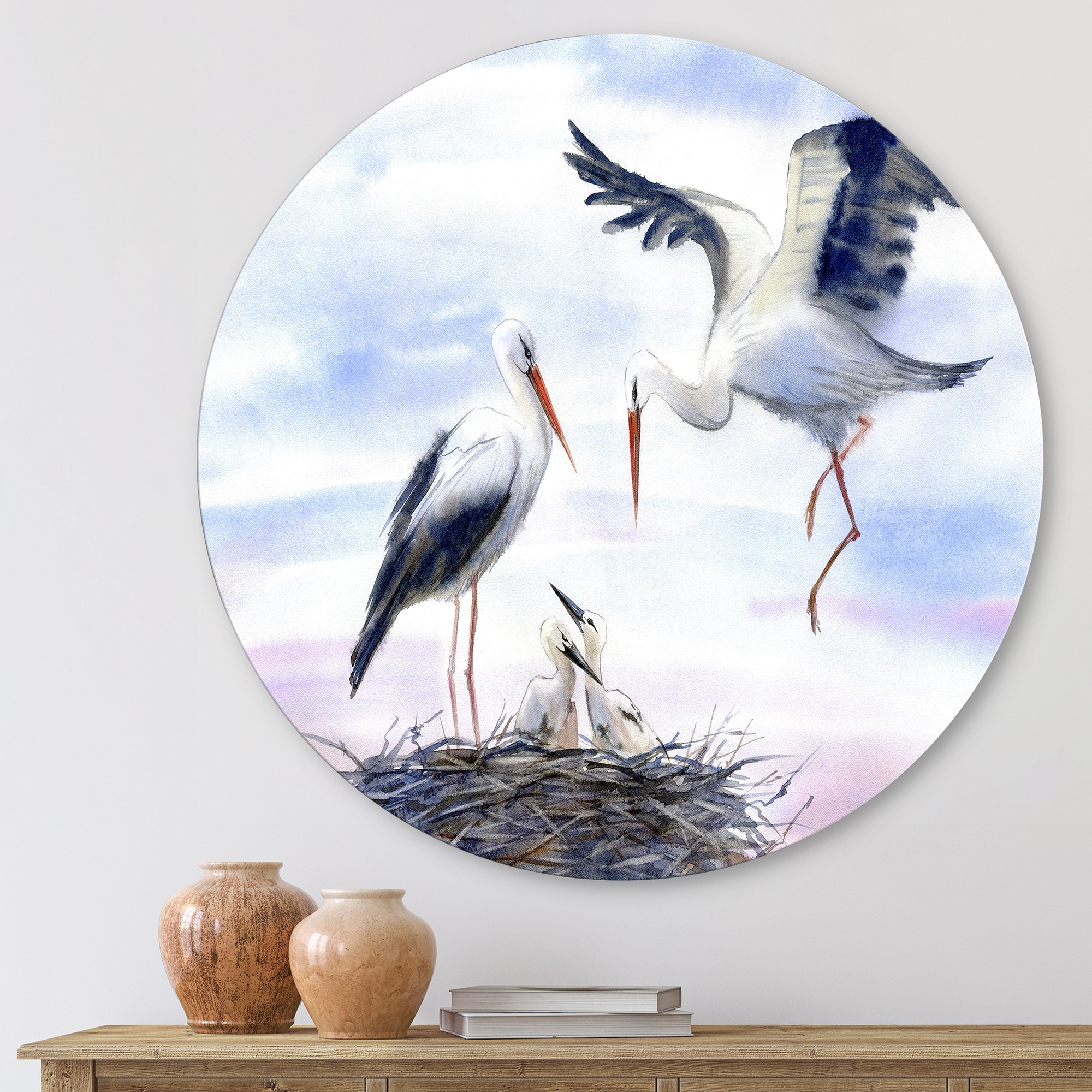 Designart 'Storks In the Nest' Farmhouse Metal Circle Wall Art