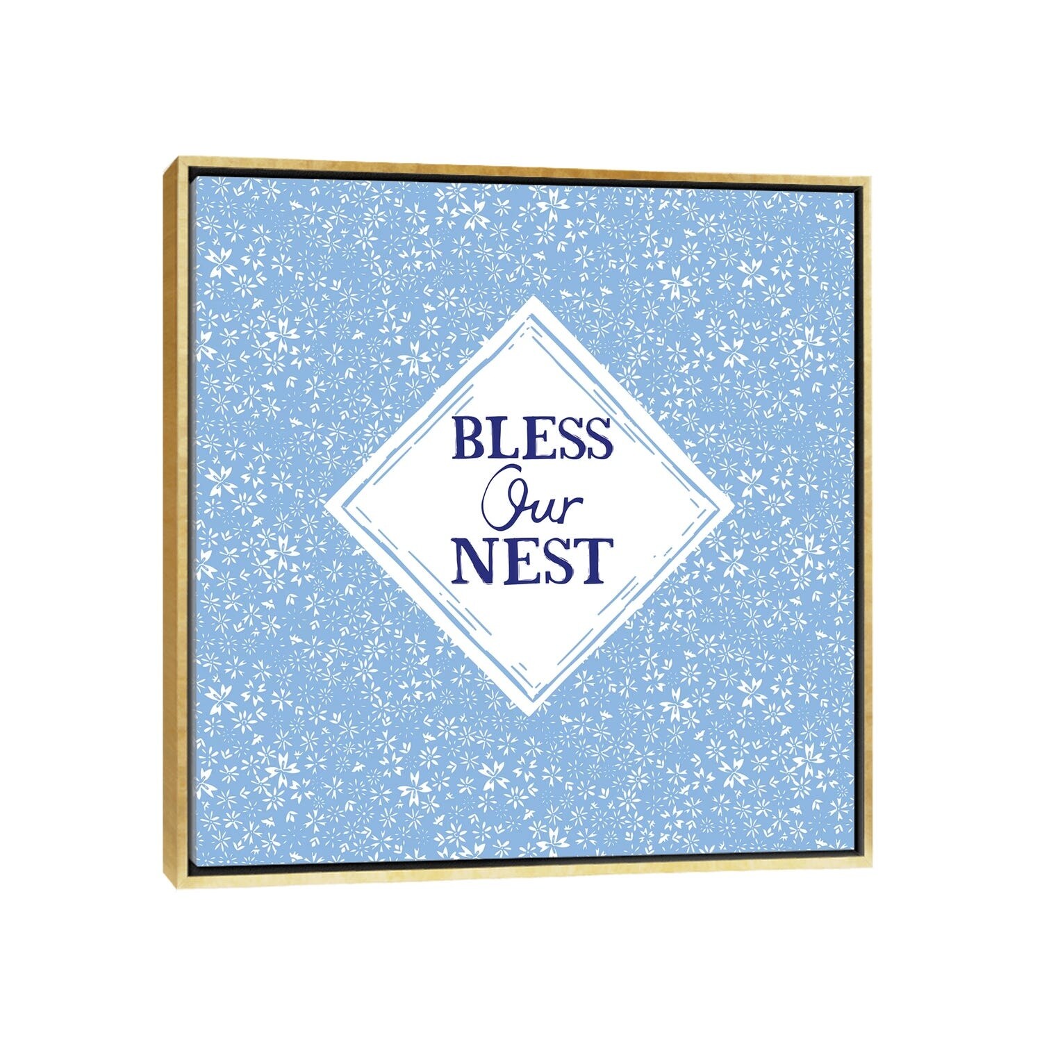 iCanvas "Bless Our Nest (Blue)" by Vicky Yorke Framed
