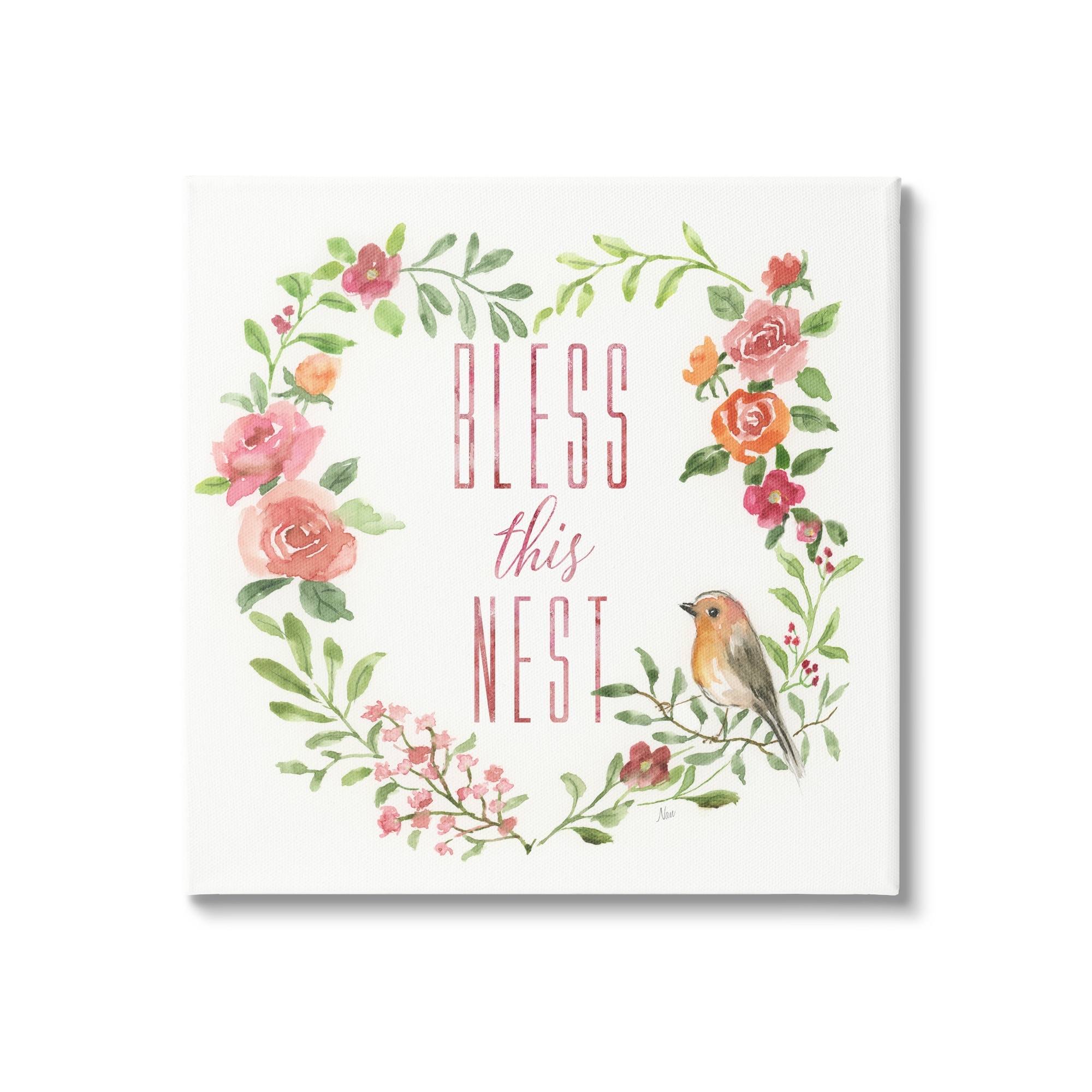 Stupell Bless This Nest Family Phrase Rose Heart Wreath Canvas Wall Art
