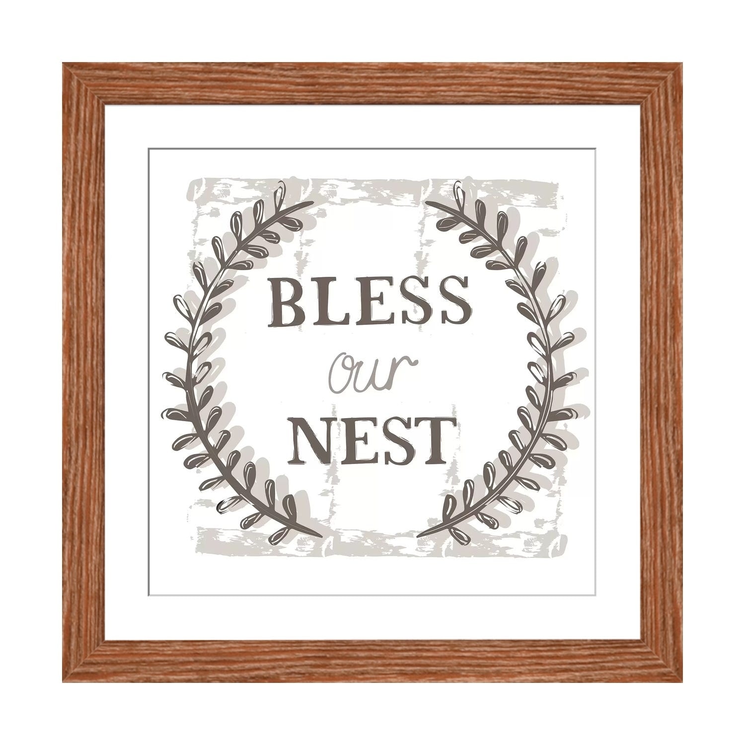 Bless Our Nest Round Sign w/Greenery & Burlap Bow - 11.5” in diameter and .25” deep.