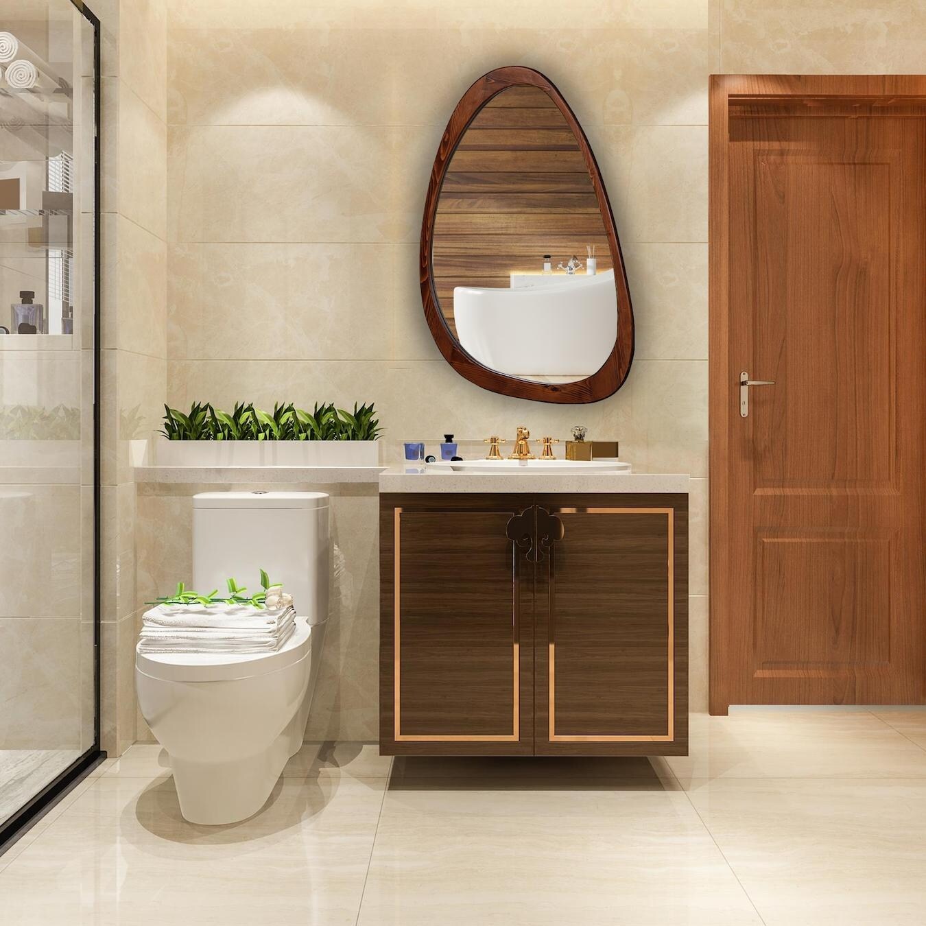 NOVA Natural Wood Framed Asymmetrical Mirror
