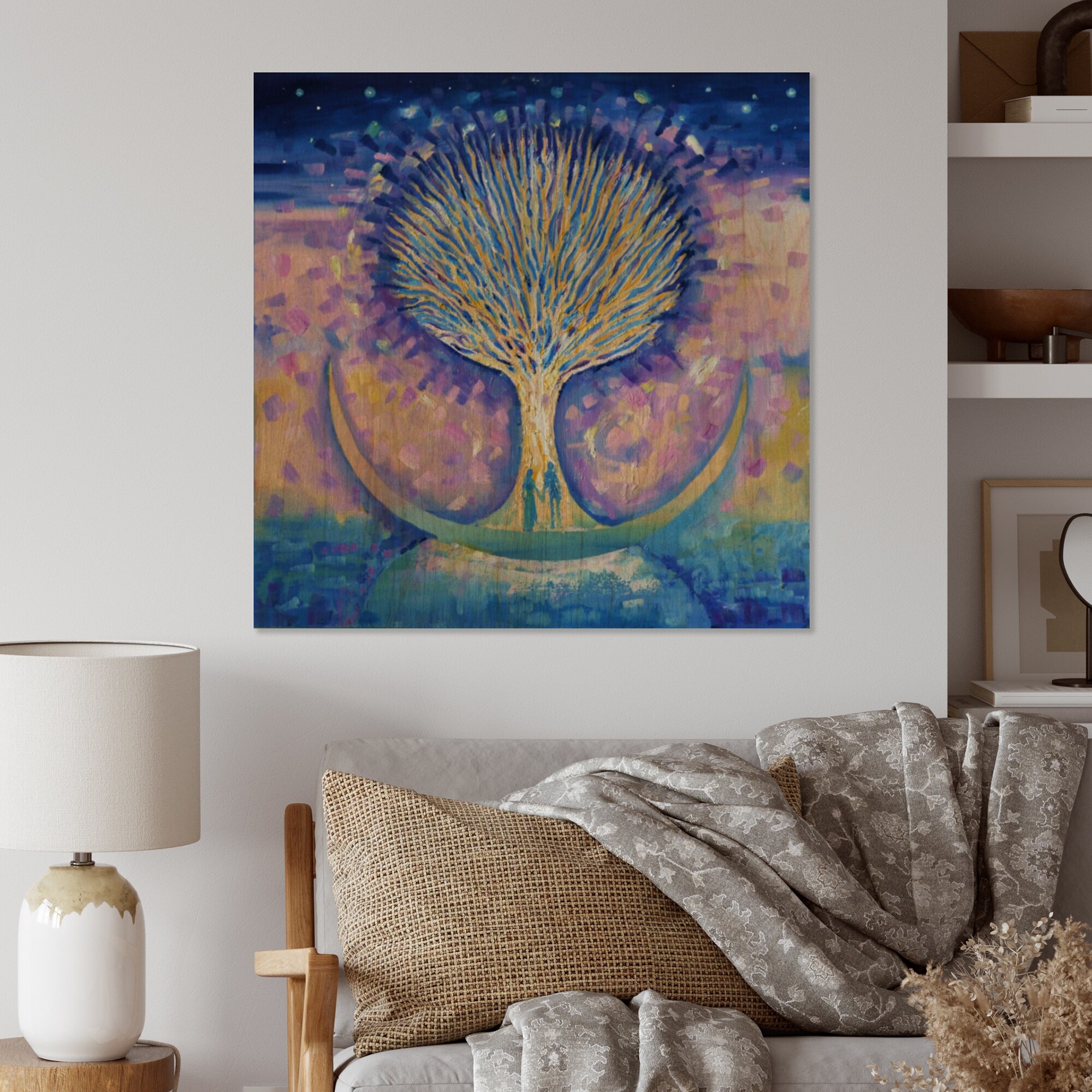 Designart 'Love Couple on the Moon' Novelty Wood Wall Art - Natural Pine Wood