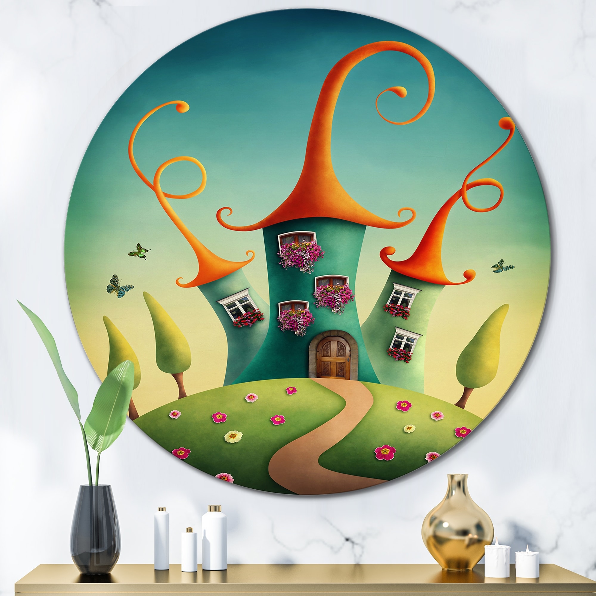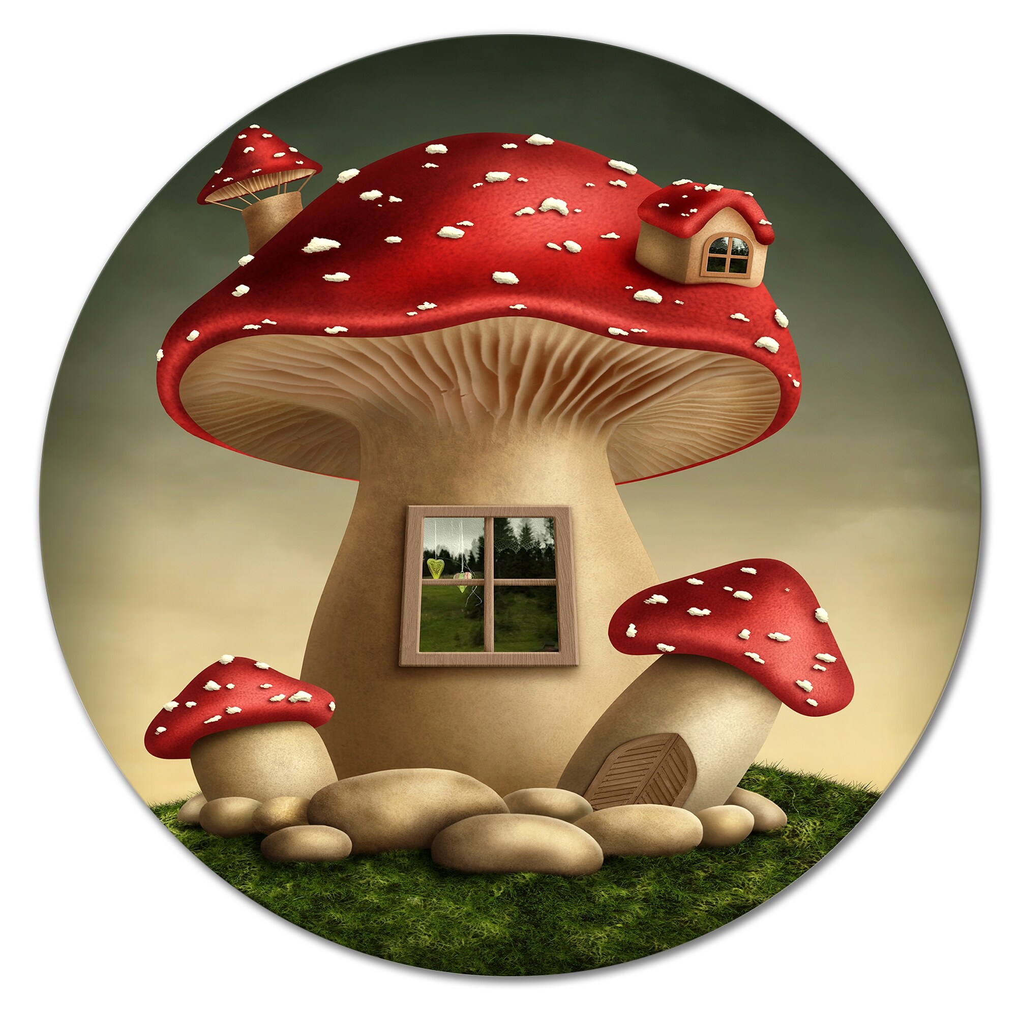 Designart 'Fantasy Mushroom House' Novelty Metal Circle Wall Art