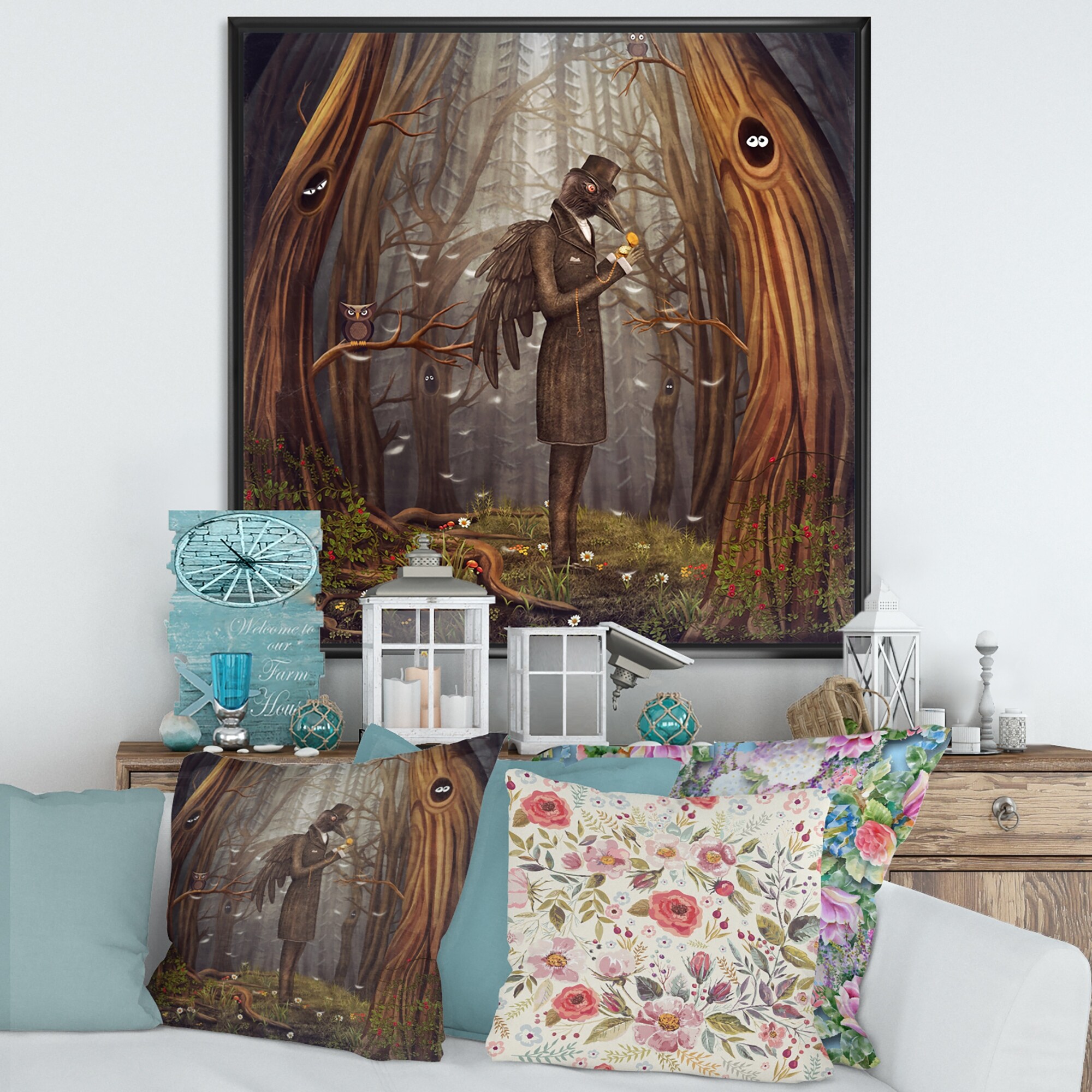 Designart "Raven Man in Forest" Novelty Framed Canvas Wall Art Print