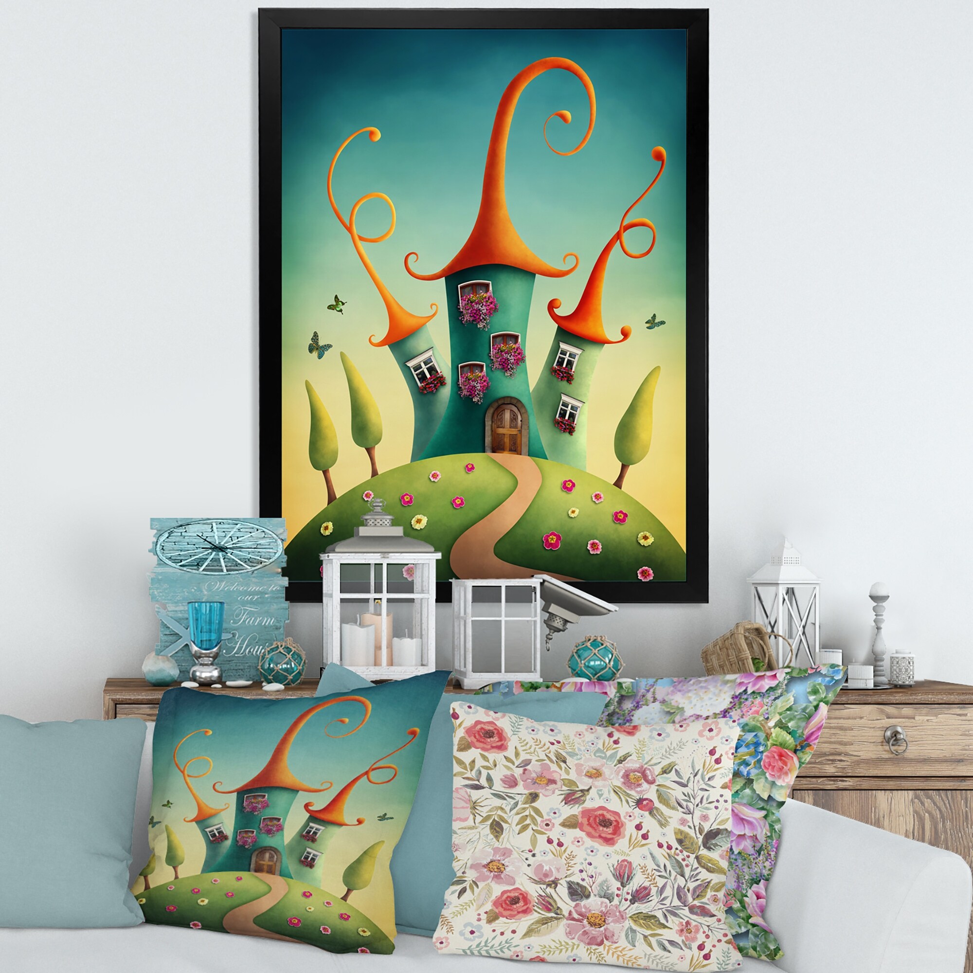Designart "Fantasy Mushroom House" Novelty Framed Canvas Wall Art Print