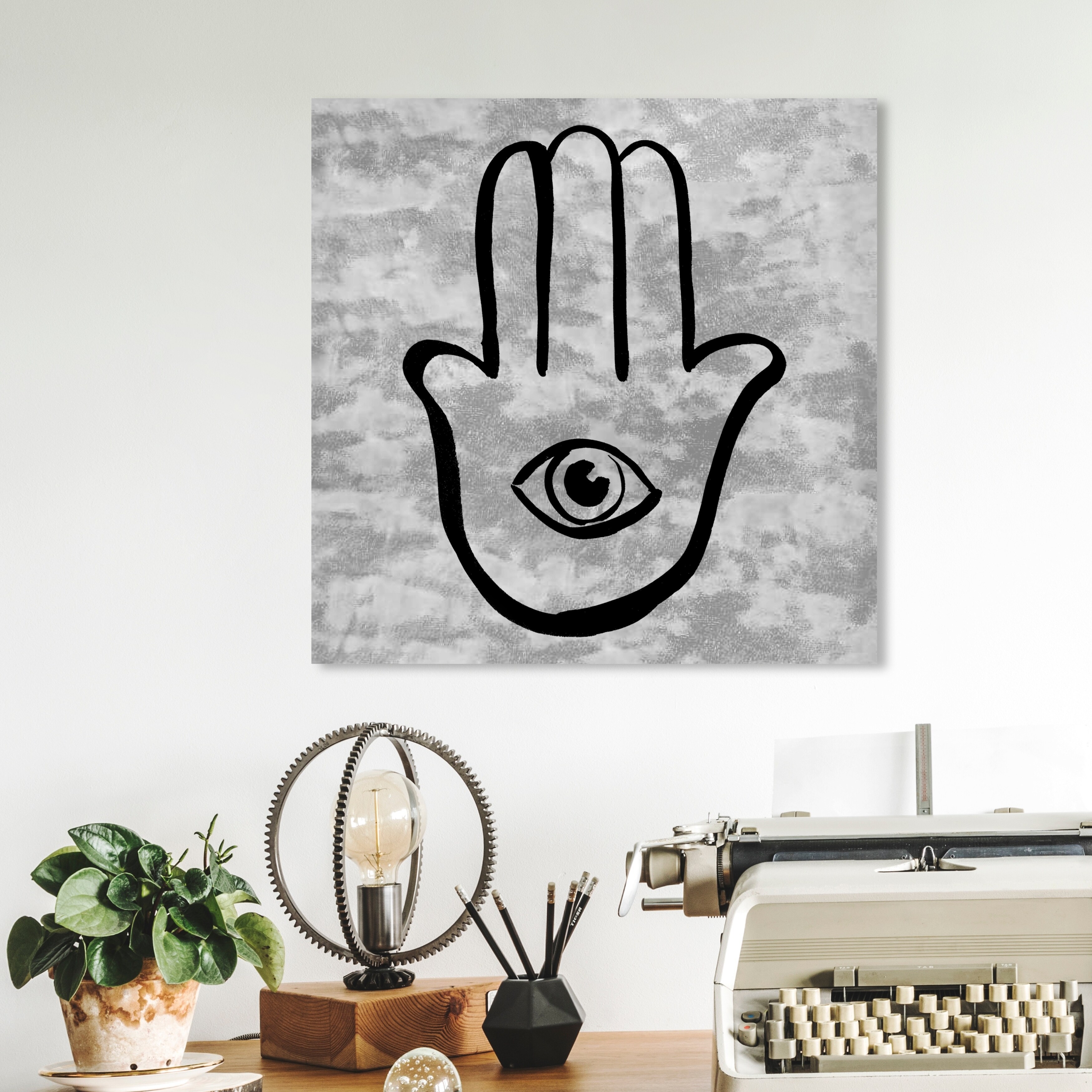 Oliver Gal 'Hamsa Velvet Light' Symbols and Objects Wall Art Canvas Print - Gray, Black