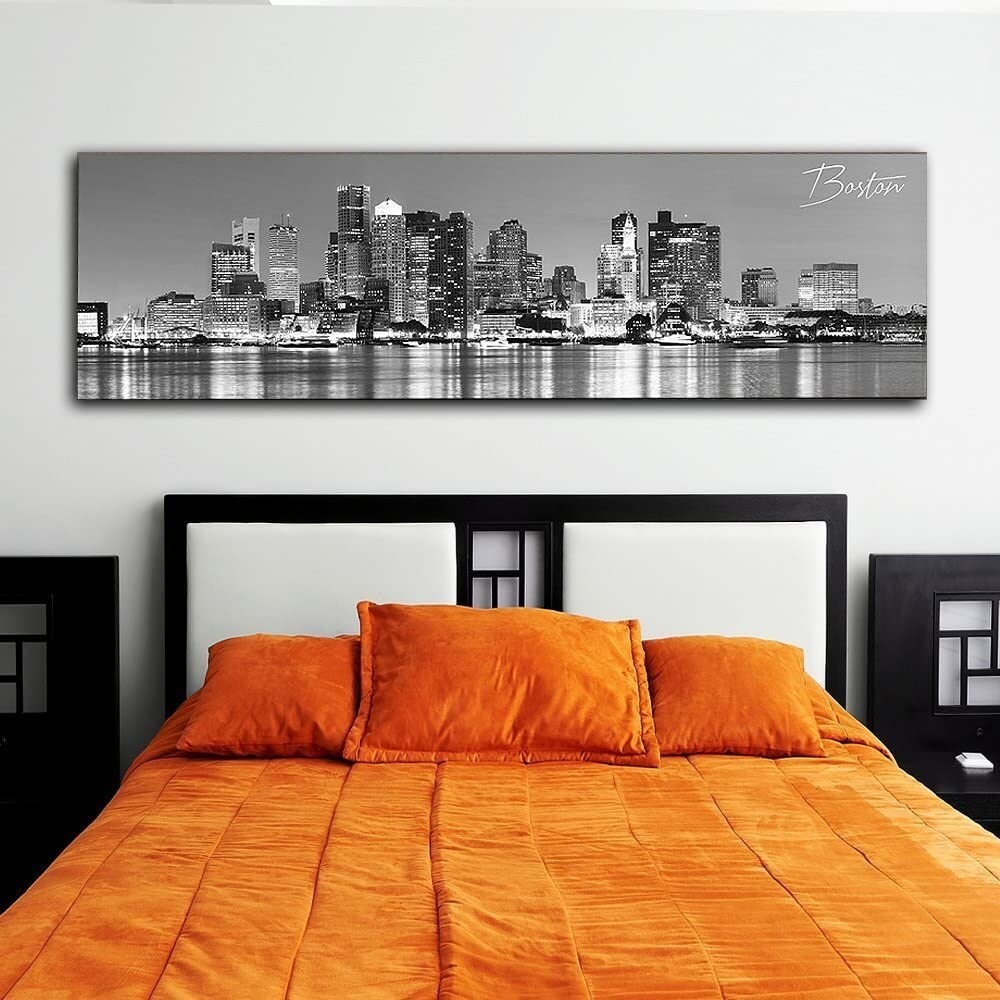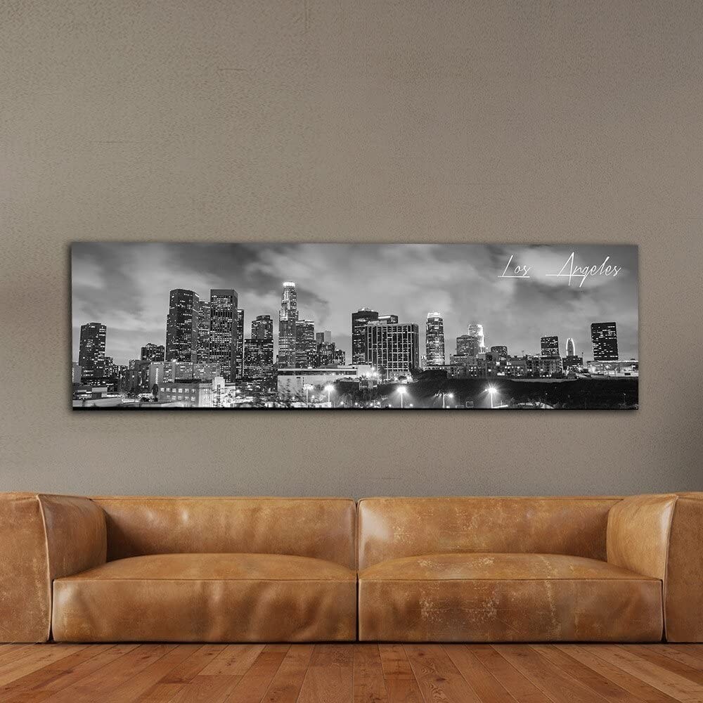 Panoramic Cityscape, Stretched Canvas Art Prints, Wall Decoration for Bedroom or Office, Framed Ready to Hang, 14" x 48"