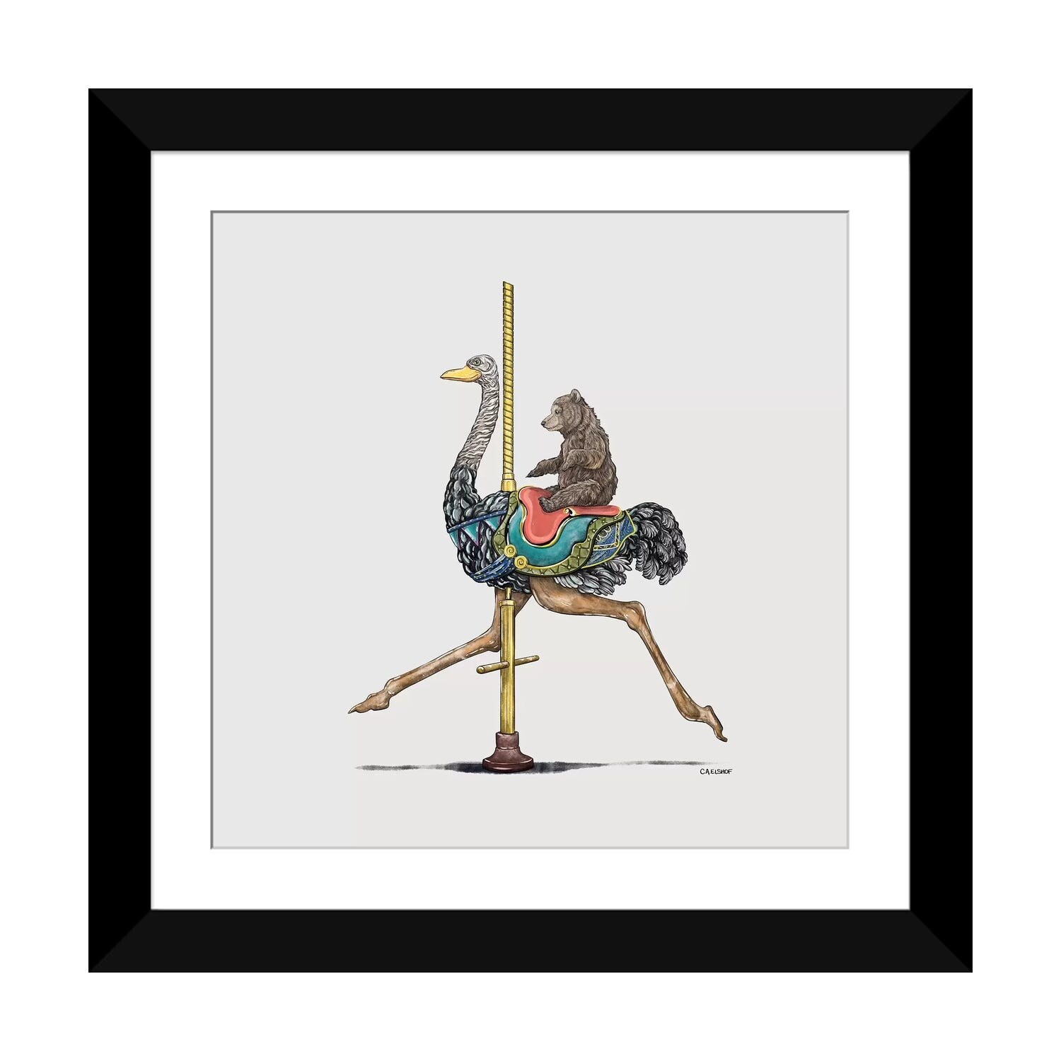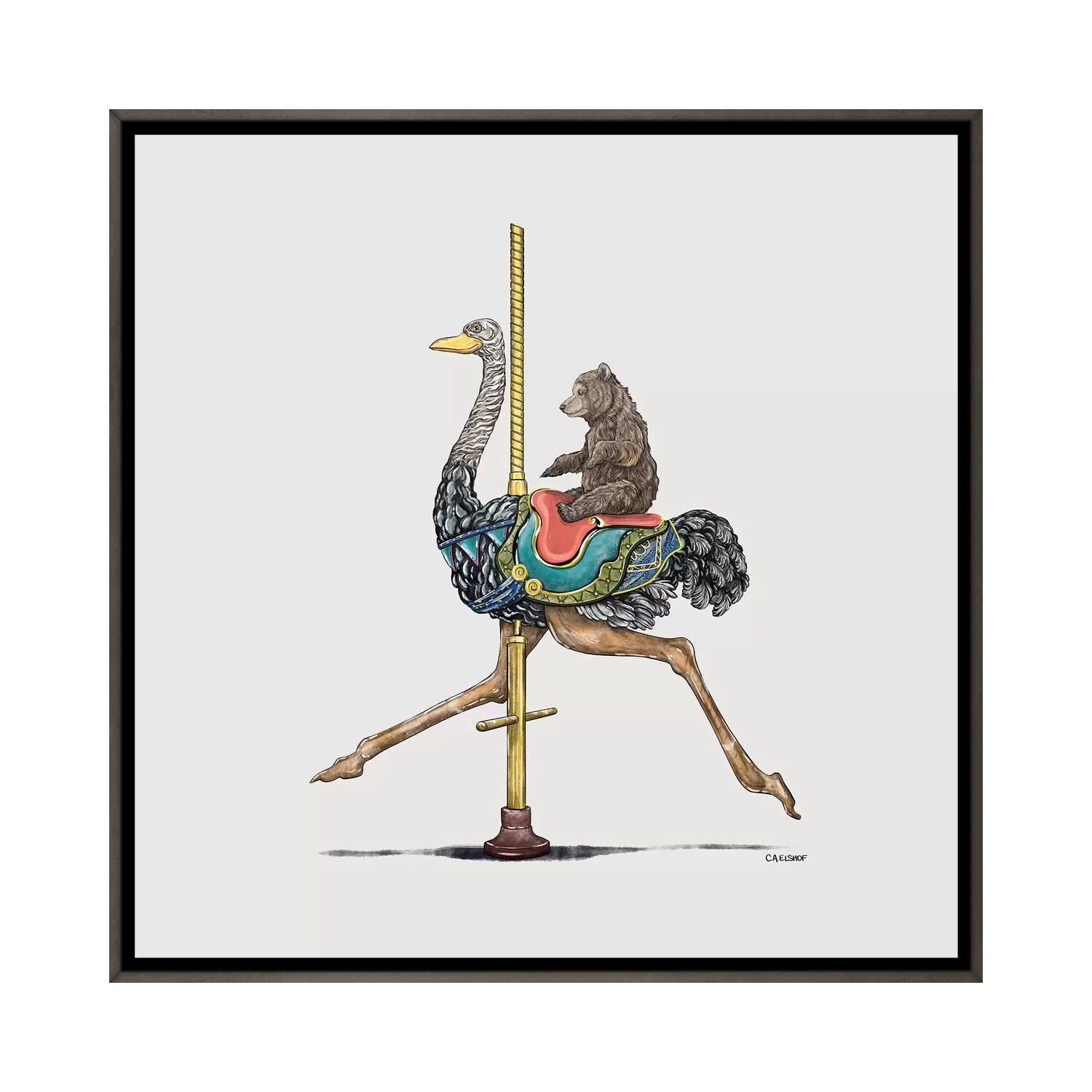 iCanvas "Bear Cub on Ostrich Carousel" by Carolynn Elshof Framed