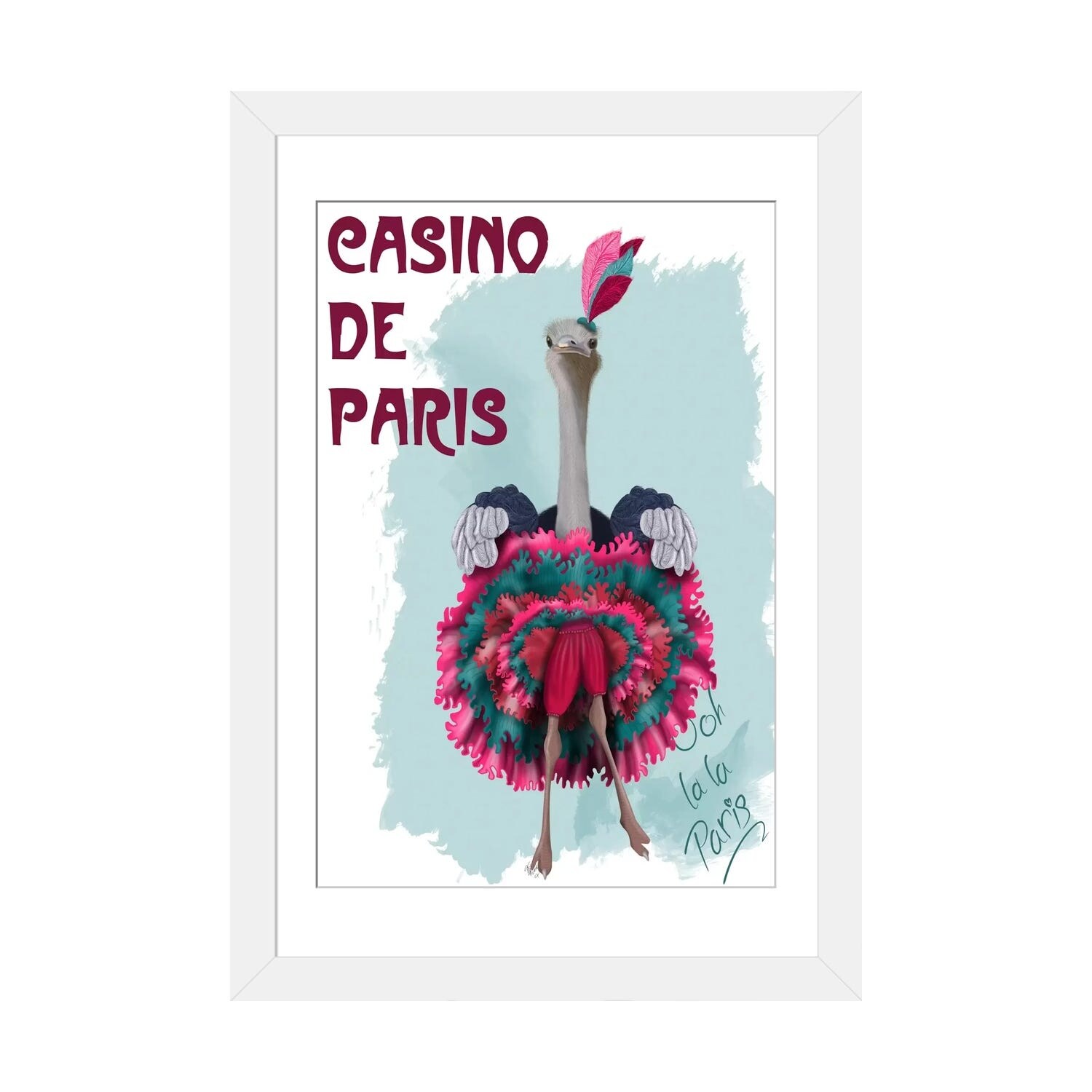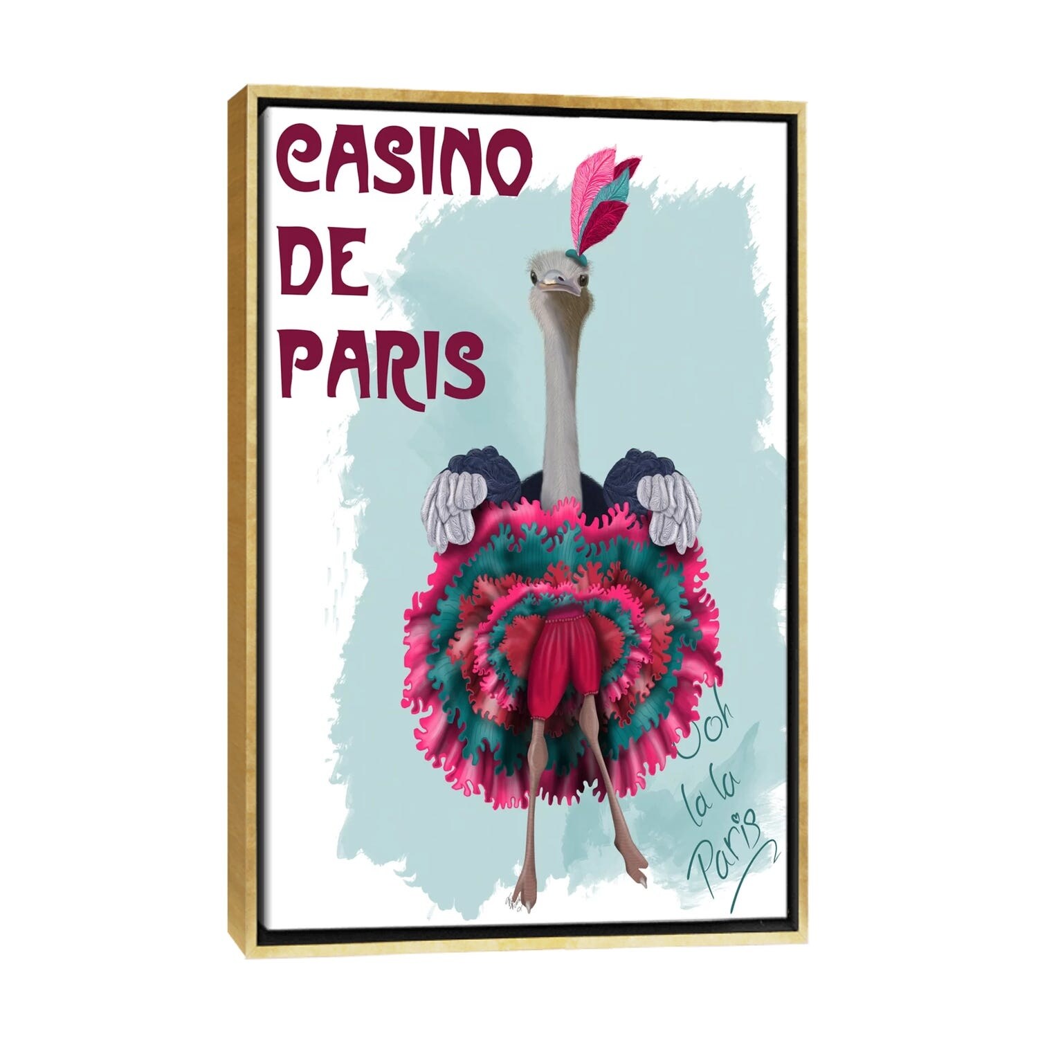 iCanvas "Ostrich, Can Can in Pink and Turquoise, Print BG" by Fab Funky Framed