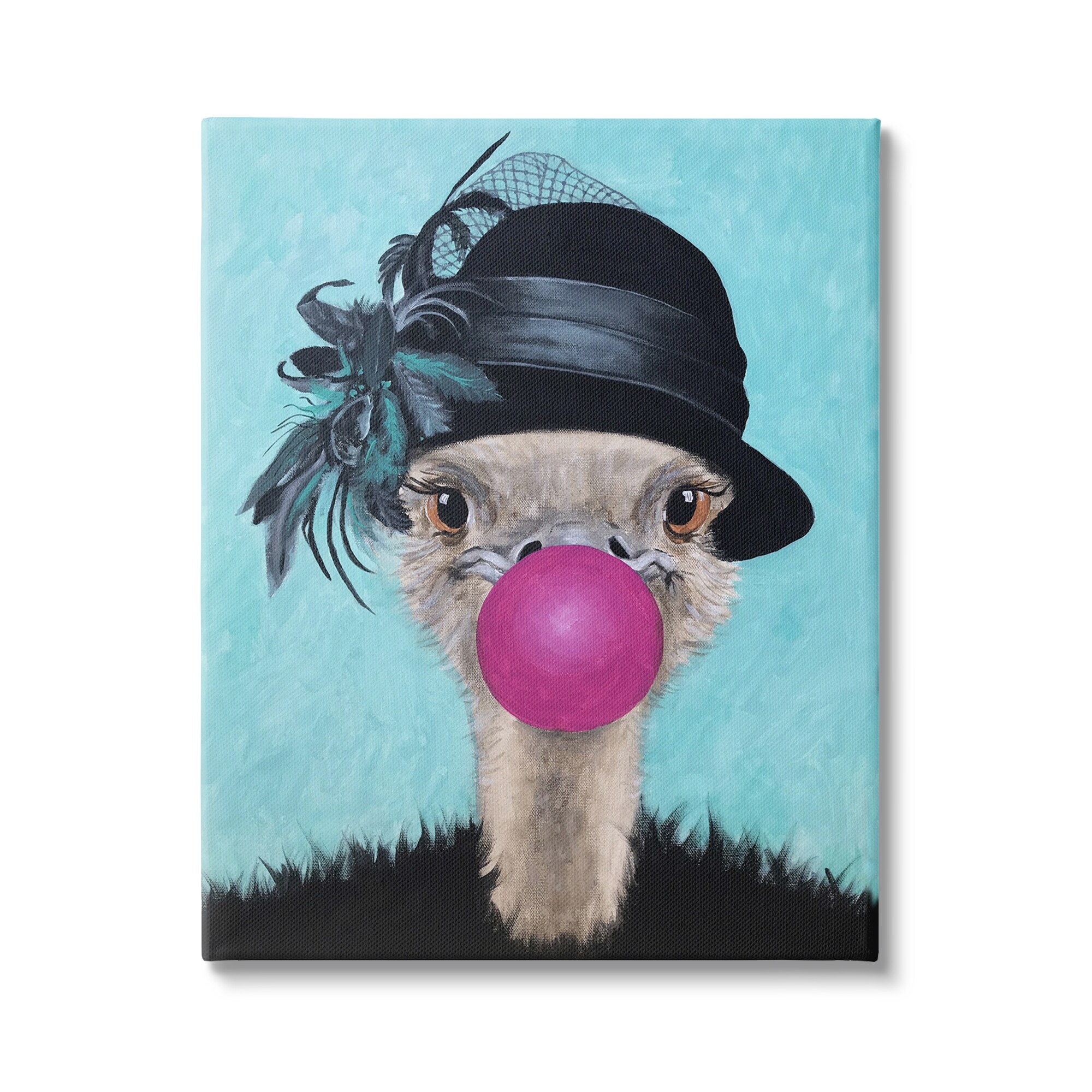 Stupell Ostrich Stylish Vintage Black Hat Pink Bubblegum Canvas Wall Art