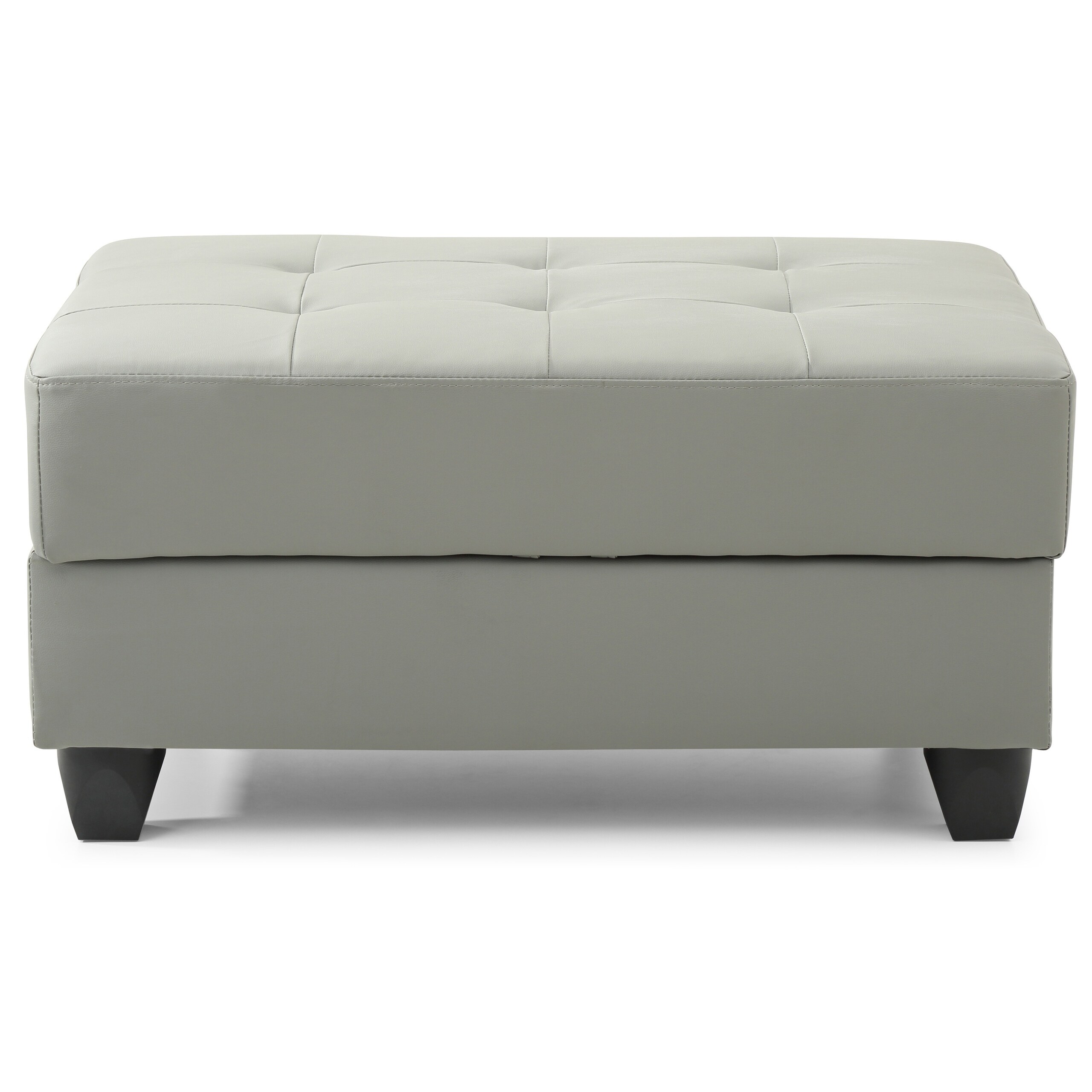 Mid Century Modern Grey Faux Leather Storage Bench Ottoman
