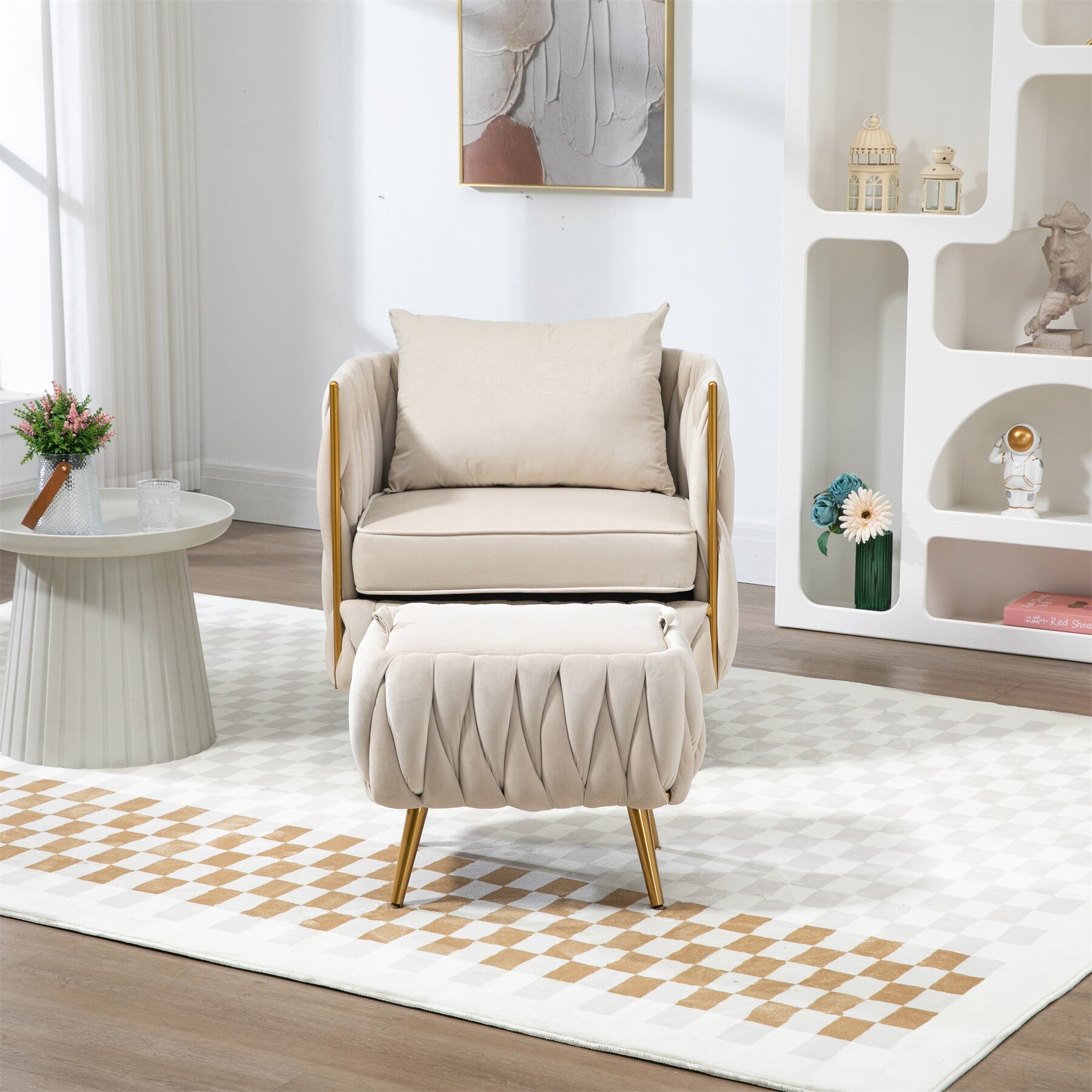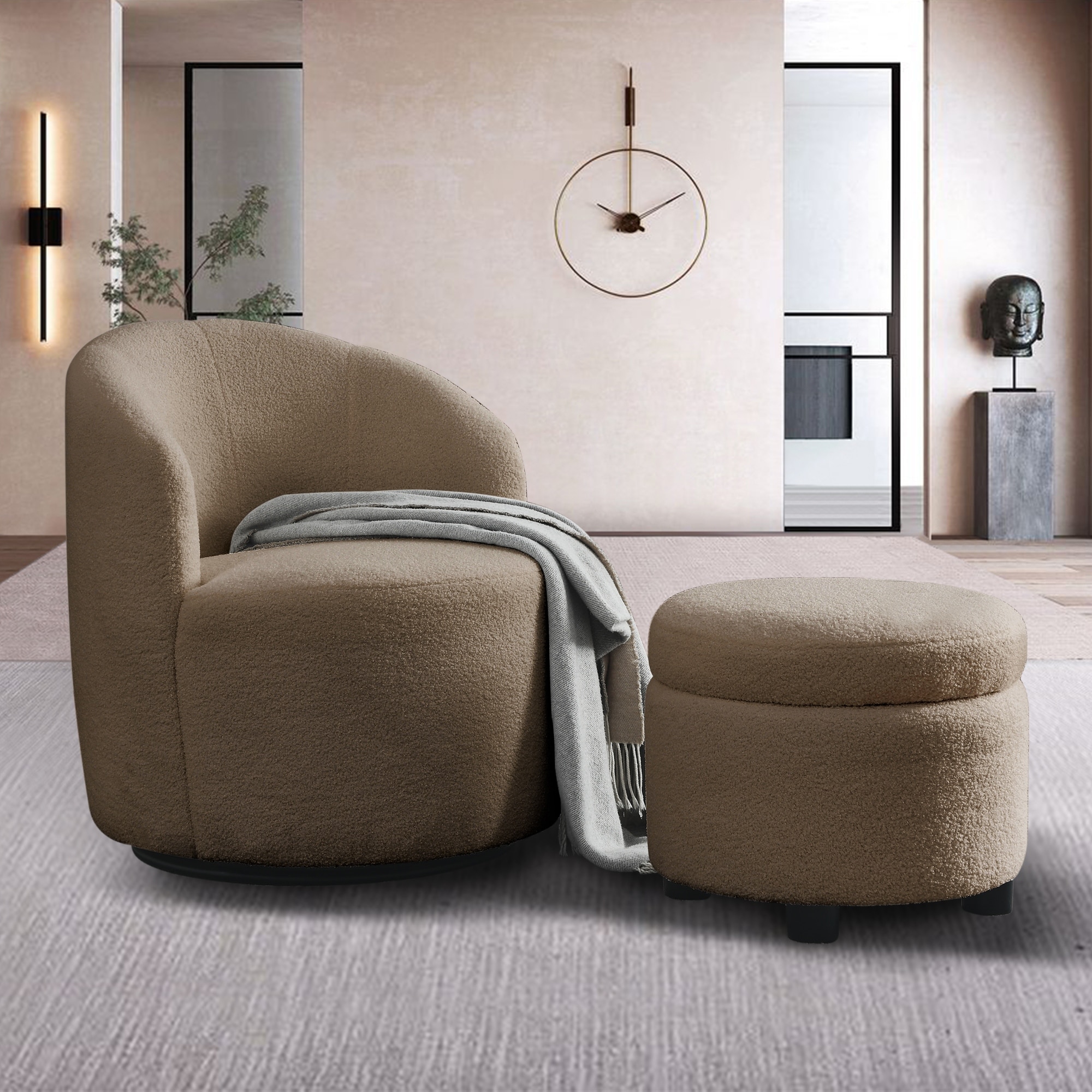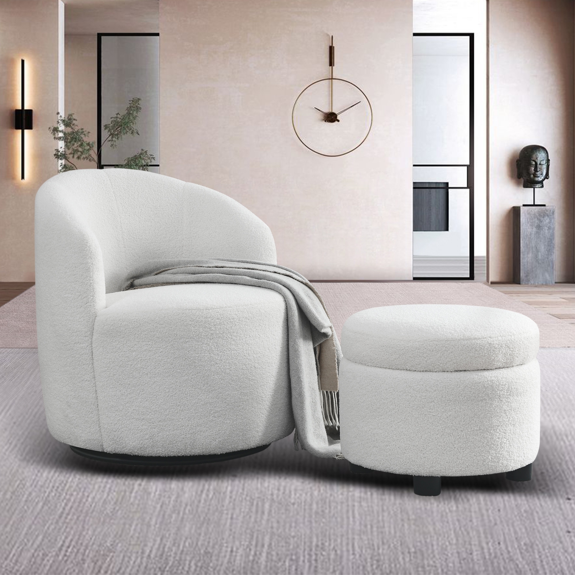Modern Accent Chair with Storage Ottoman Chair Tufted Barrel Chair Set Arm Chair