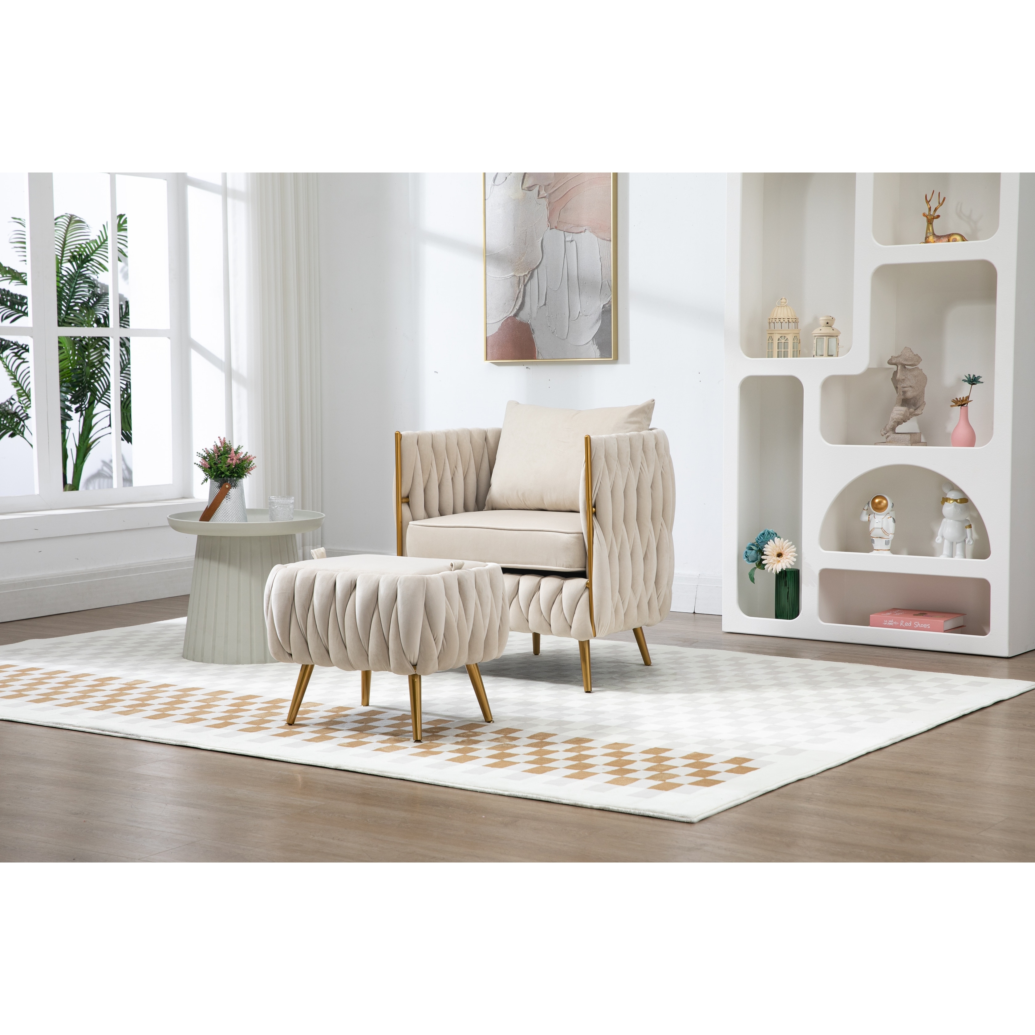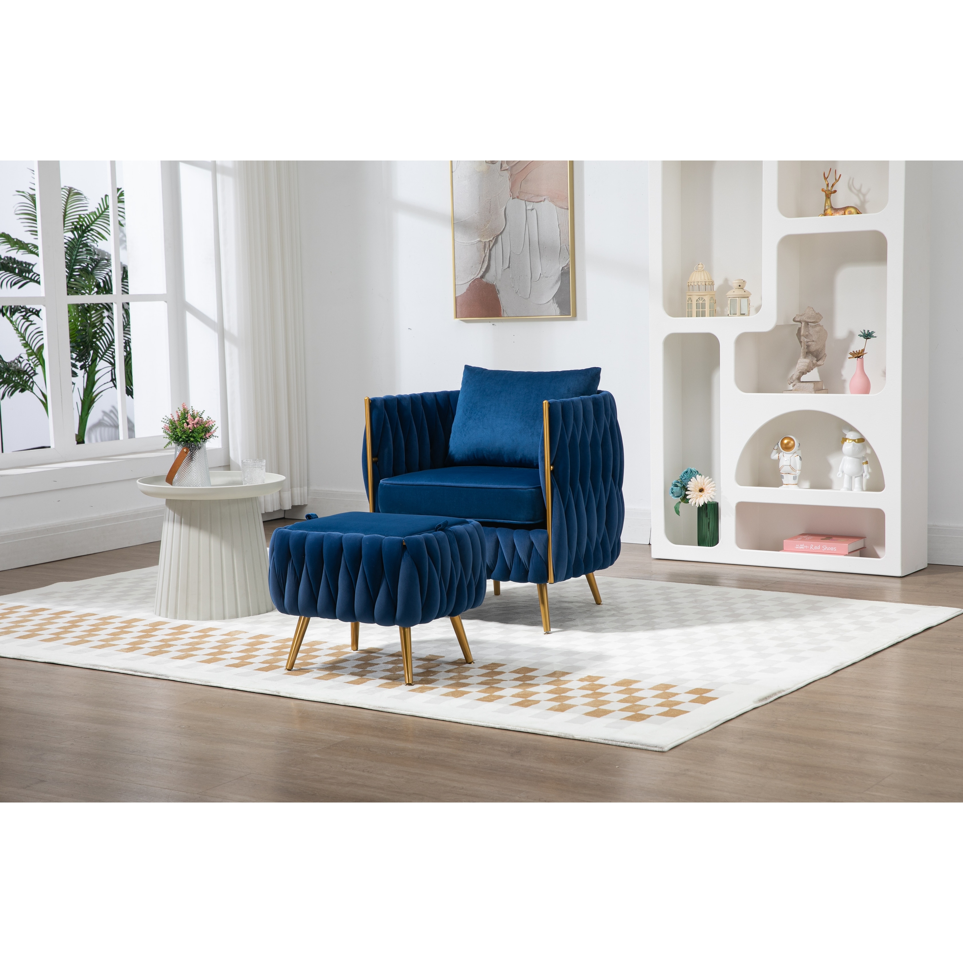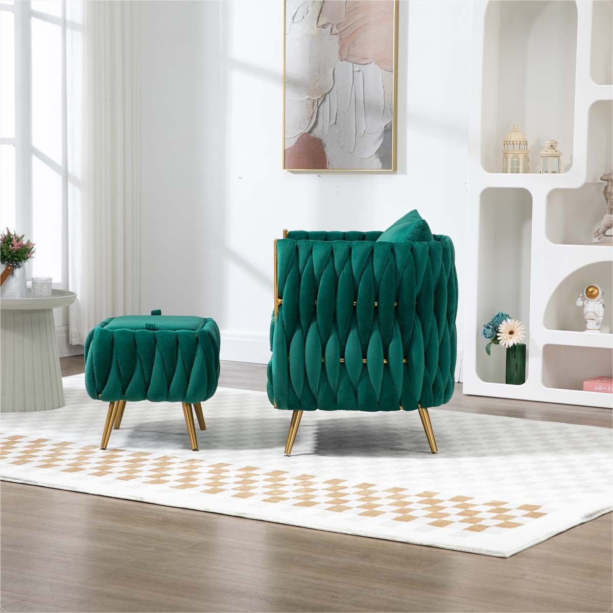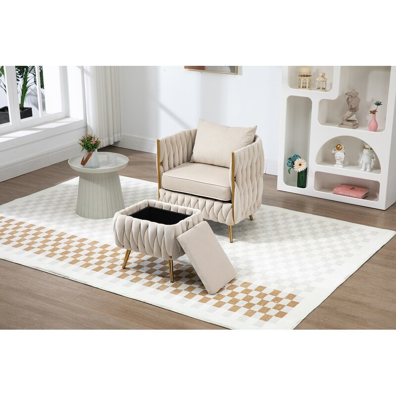 Modern Accent Chair with Storage Ottoman Chair Tufted Barrel Chair Set Arm Chair Suitable for Living Room Bedroom