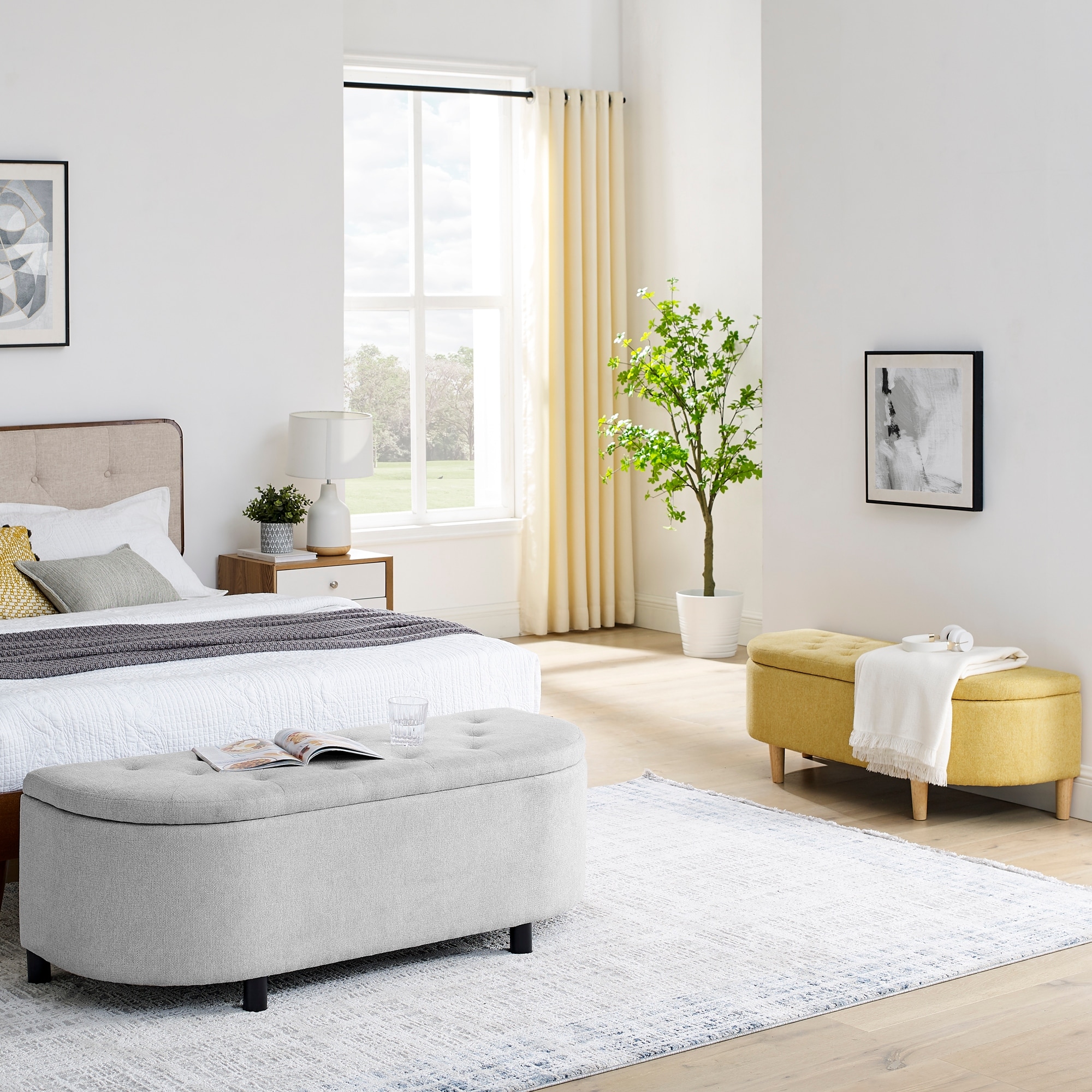 Set of 2, Linen Storage Ottomans, Entryway Bench for Living Room Bedroom