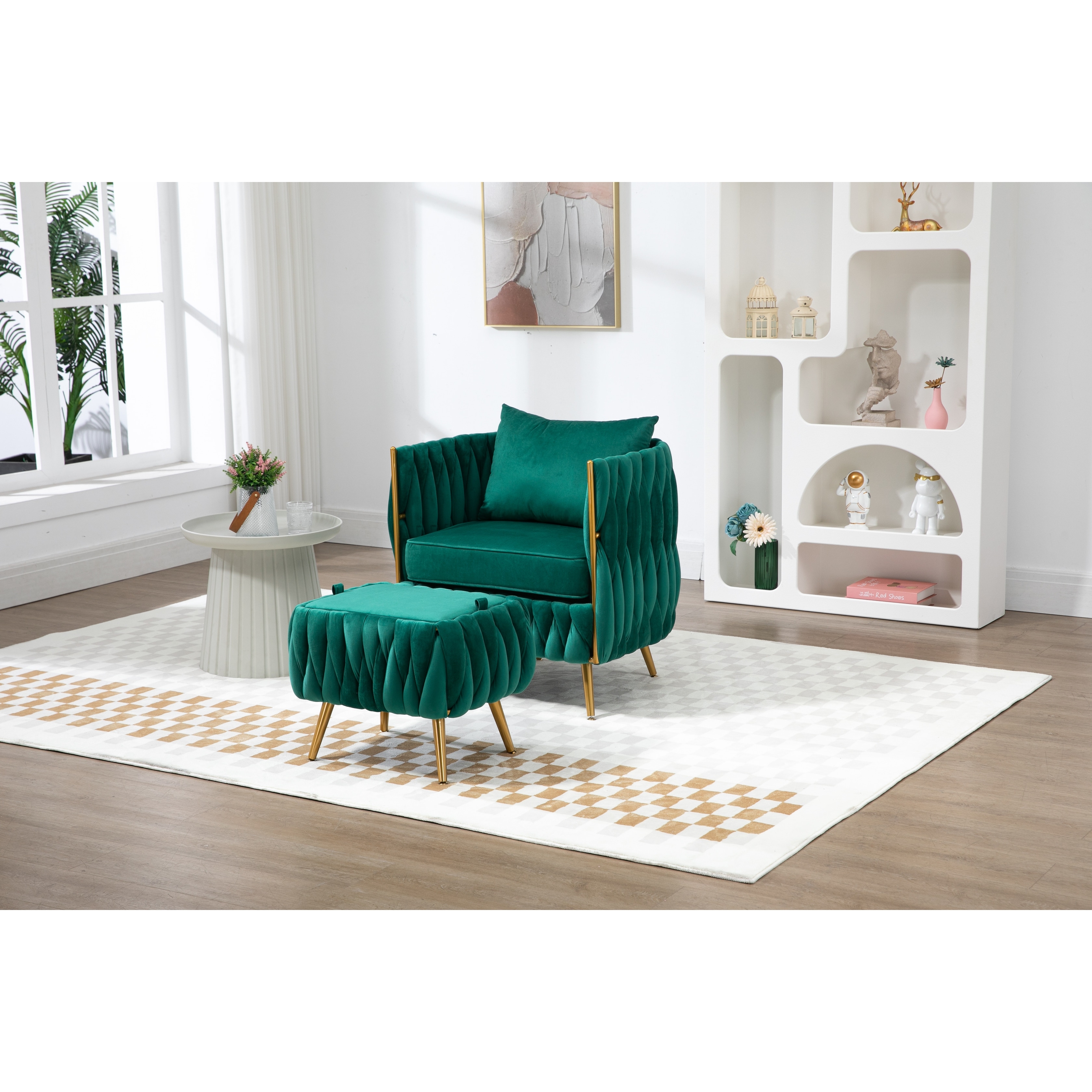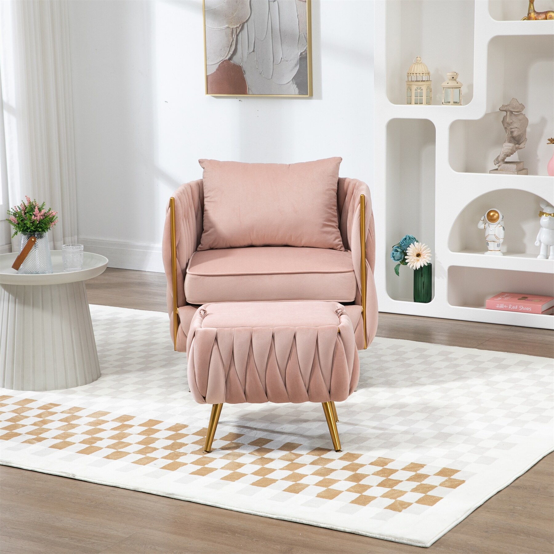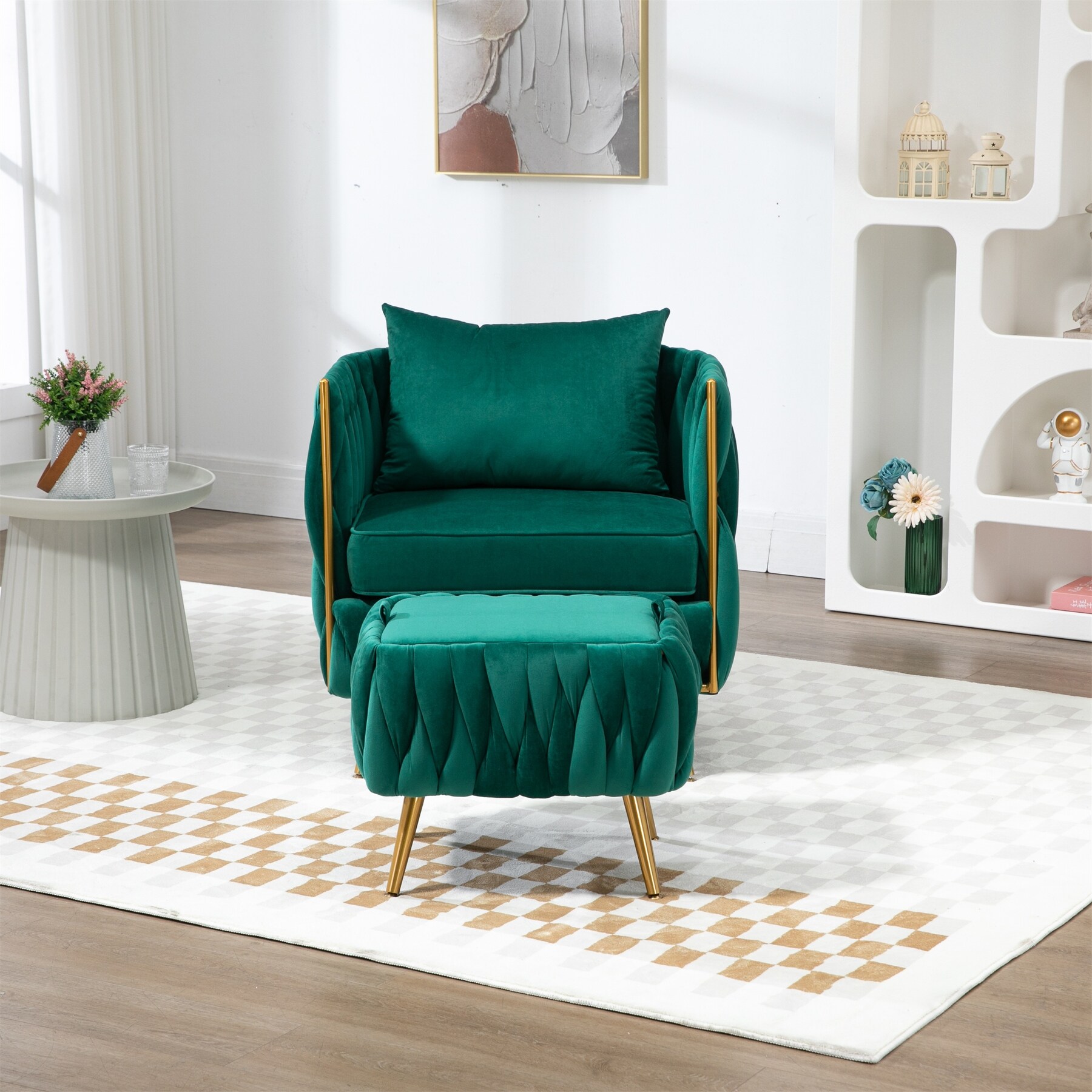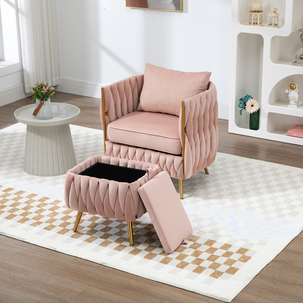 Modern Velvet Single Sofa Chair with Storage Ottoman and Pillow