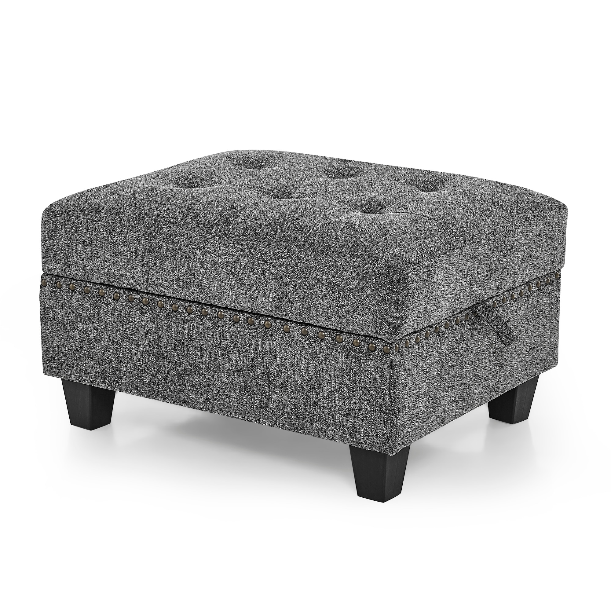 Tufted Linen Upholstred Wooden Ottoman With Storage, Gray