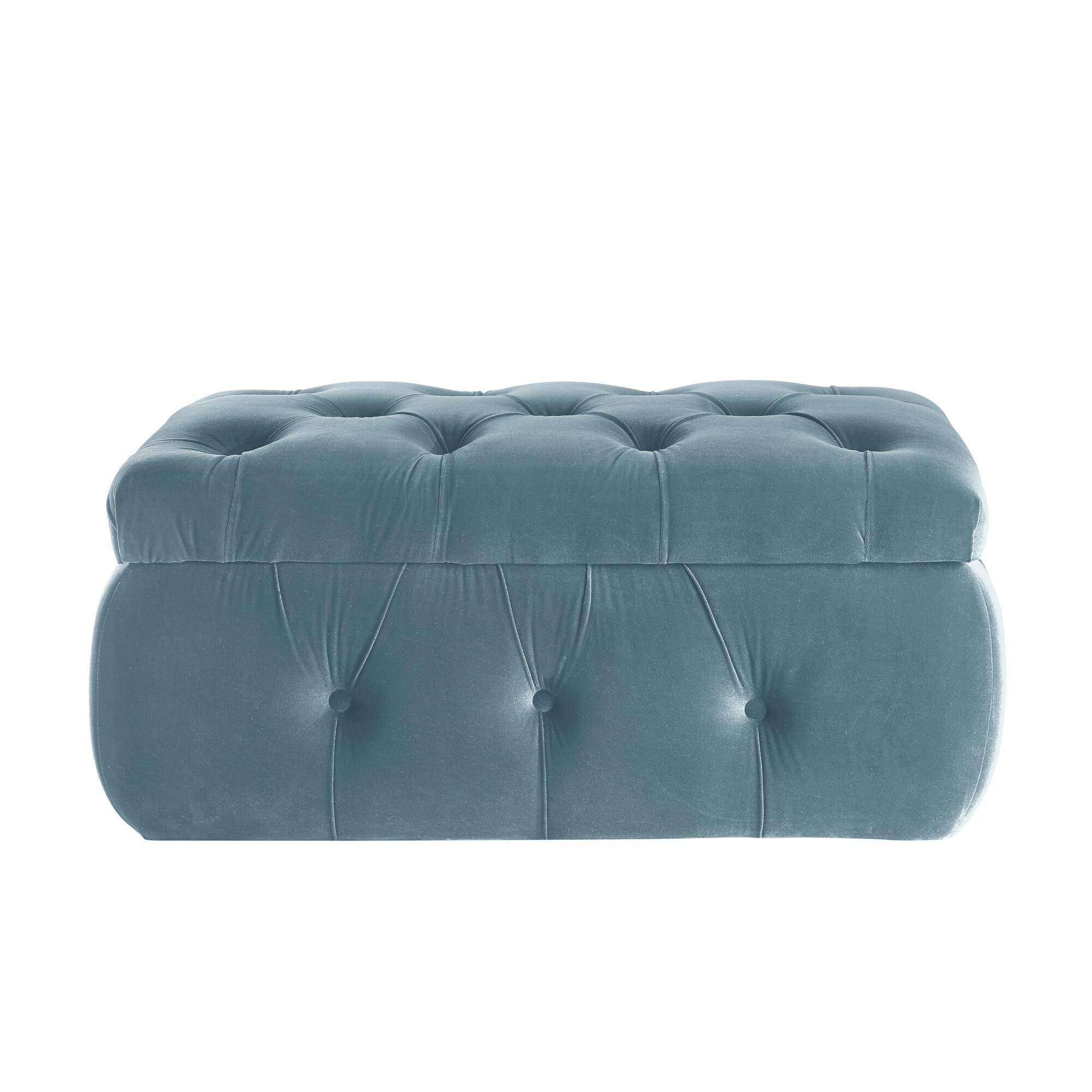 Contemporary Tufted Fabric Storage Ottoman, Teal