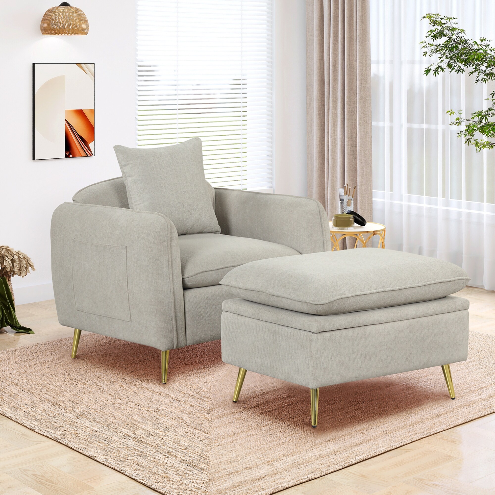 Accent Chair with Storage Ottoman Chair