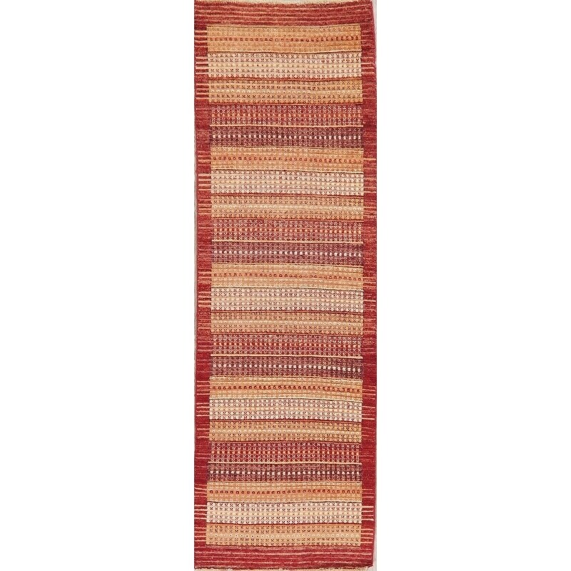 Traditional Stripe Modern Oriental Hand Knotted Runner Rug - 9' 2'' X 2' 6'' Runner