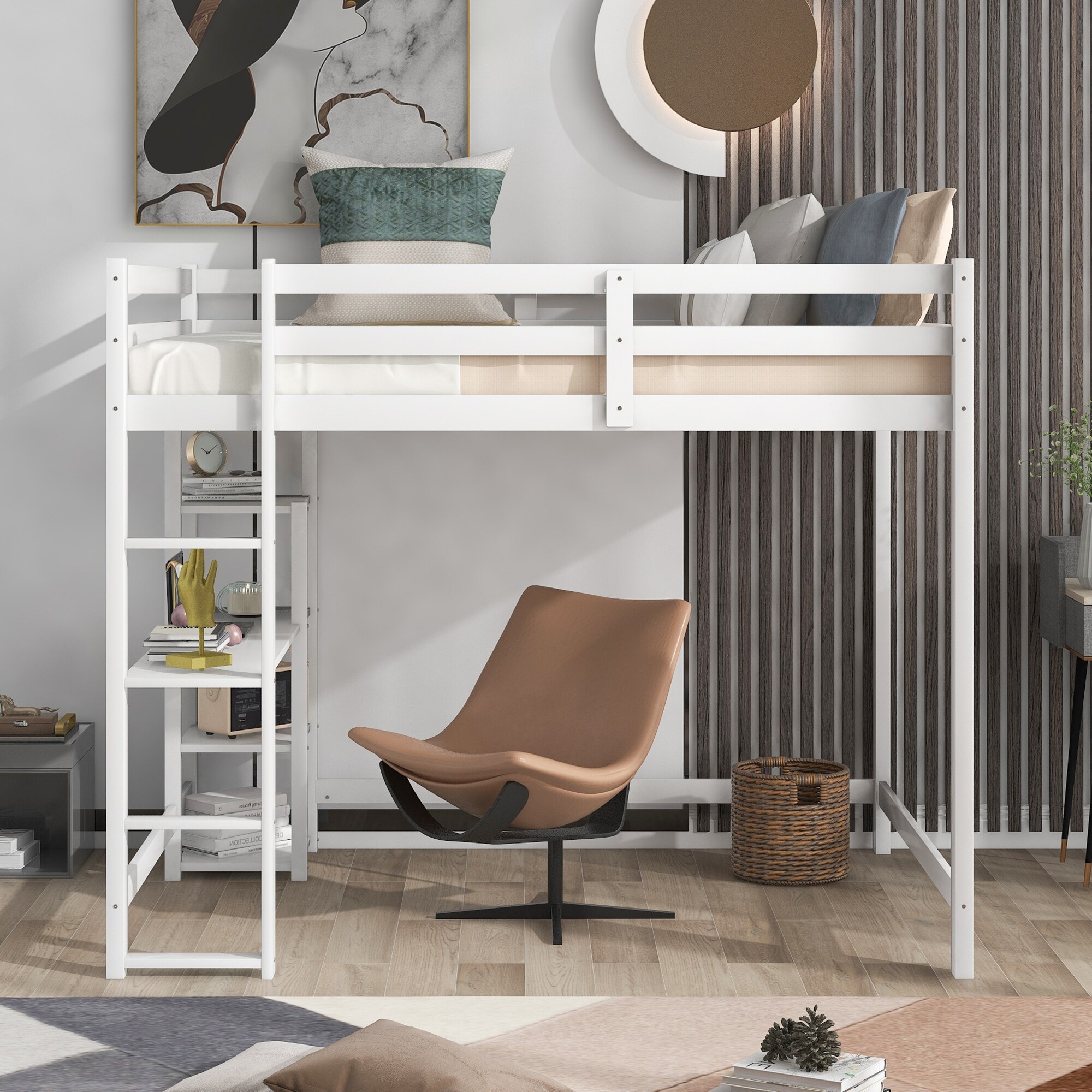Twin Size Wood Storage Loft Bed with Multi-shelves, Desk and Ladder, Gray