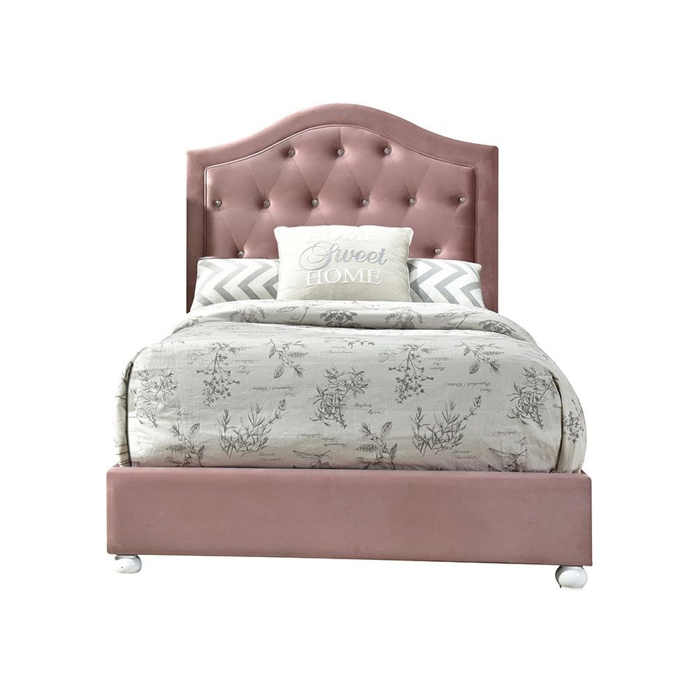 Fabric Upholstered Twin Bed with Wood Legs and Tufted Headboard in Pink
