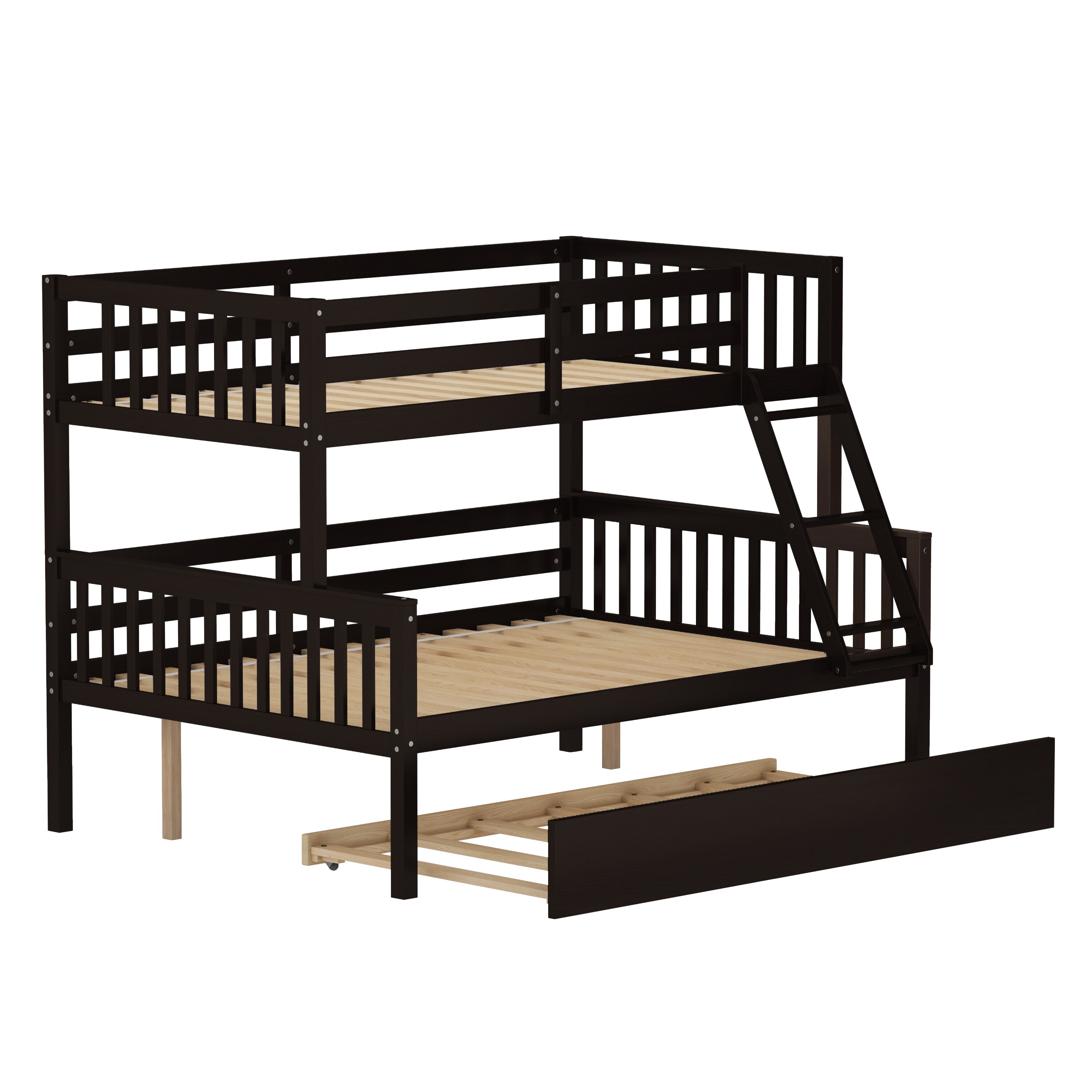 Twin Over Full Bunk Bed with Trundle, Convertible into 2 Beds, with Ladder and Safety Rails