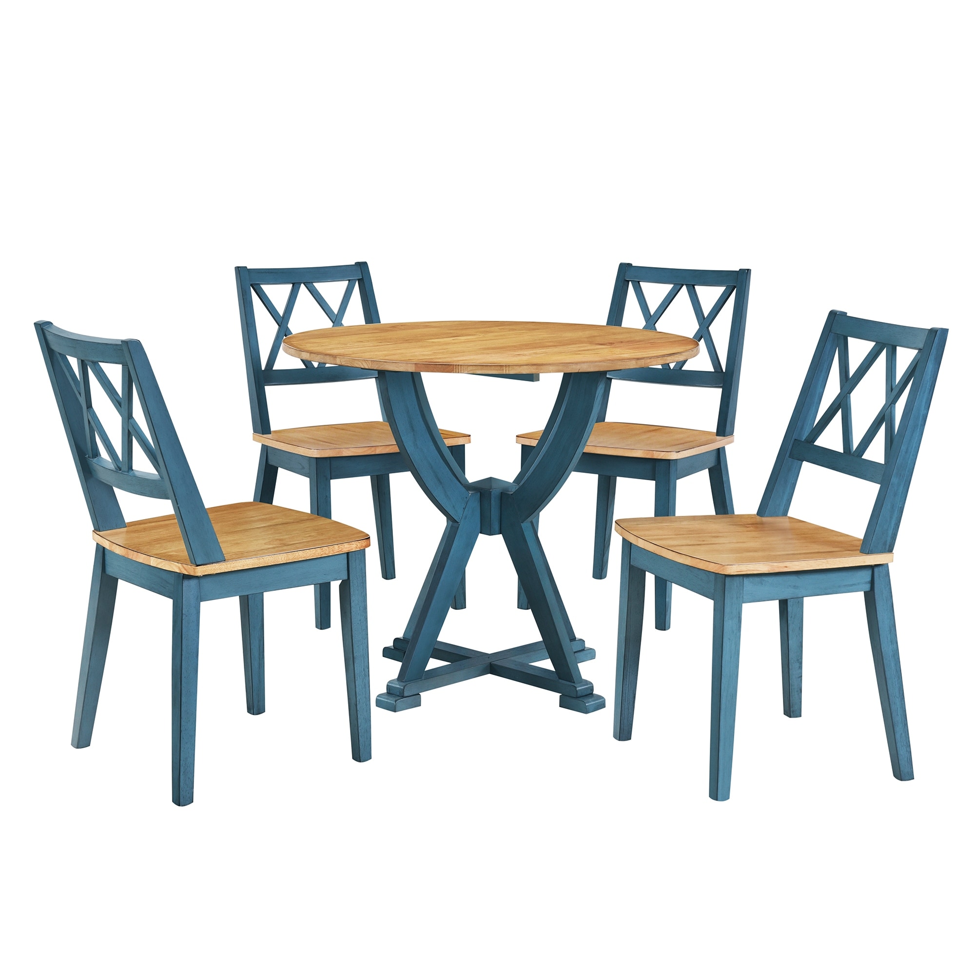 Trestle Pedestal Mid-Century 5-Piece Round Dining Table Set