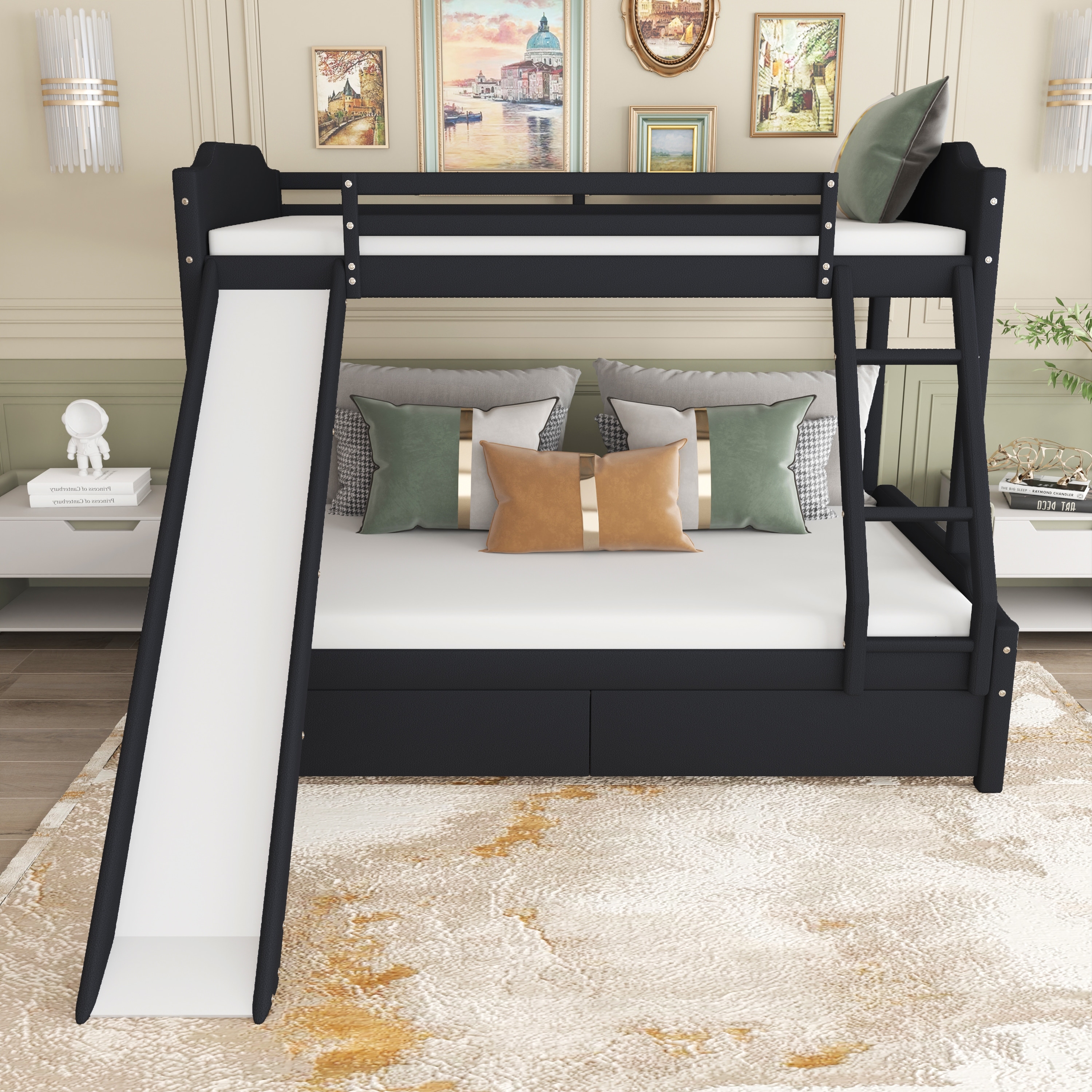 Twin over Full Size Upholstery Bunk Bed with 2 Drawers, Convertible Slide and Ladder