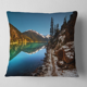 Designart 'Blue Clear Lake with Mountains' Landscape Printed Throw Pillow