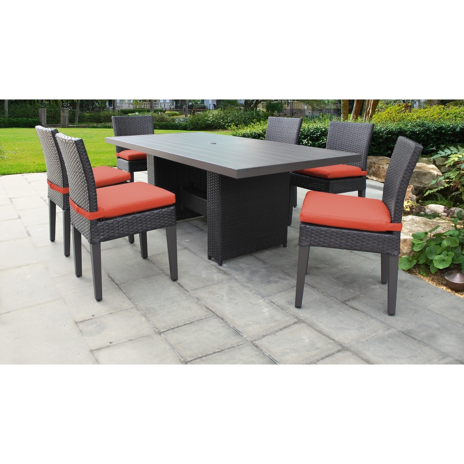 Belle Rectangular Outdoor Patio Dining Table with 6 Armless Chairs