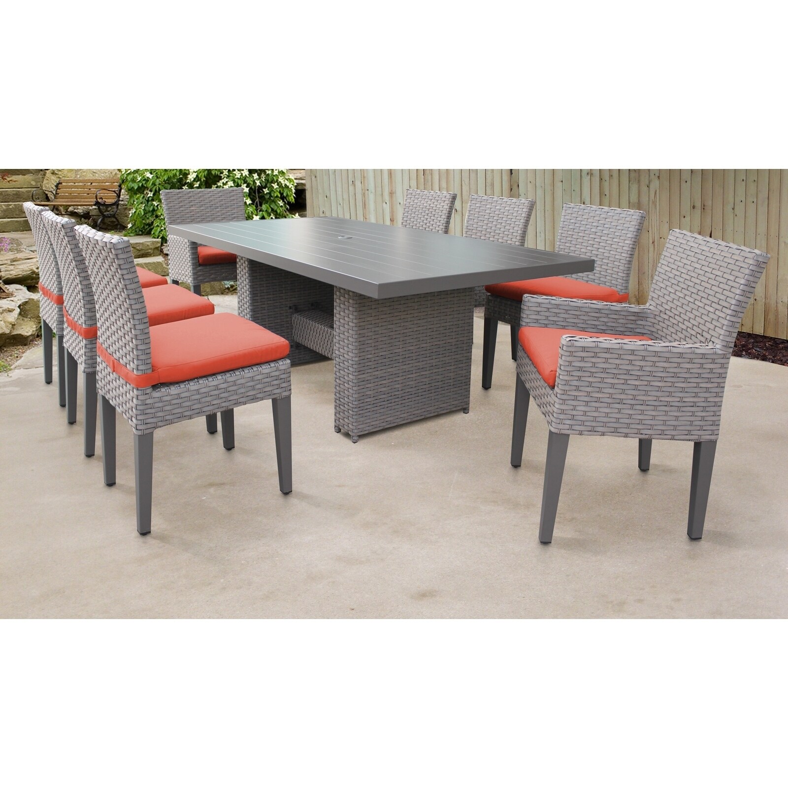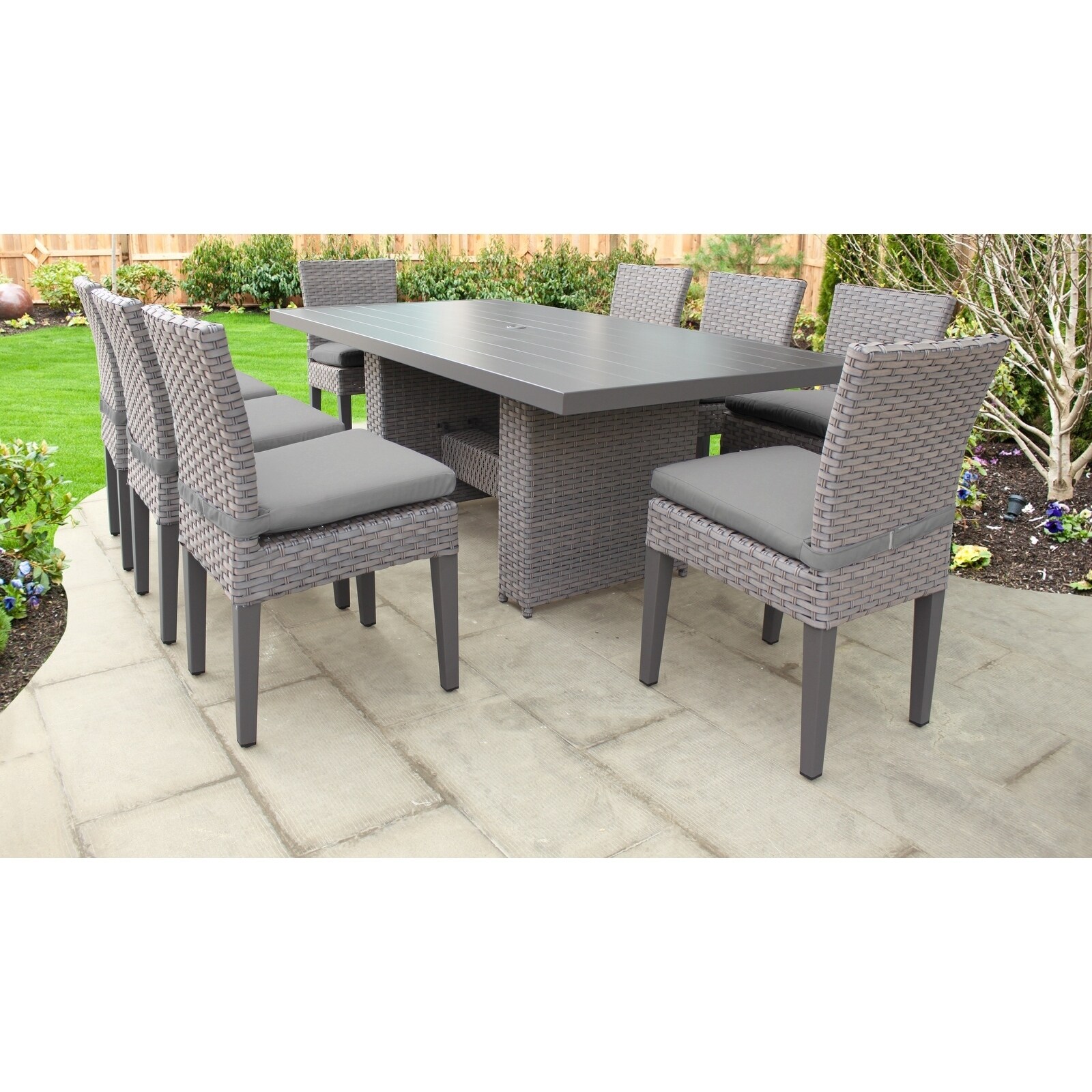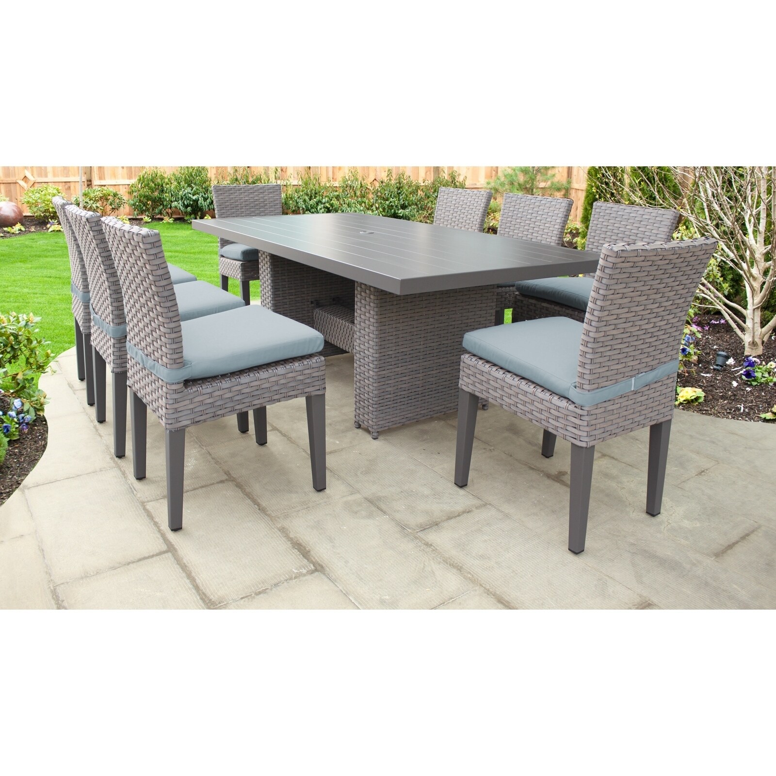 Florence Rectangular Outdoor Patio Dining Table with 8 Armless Chairs