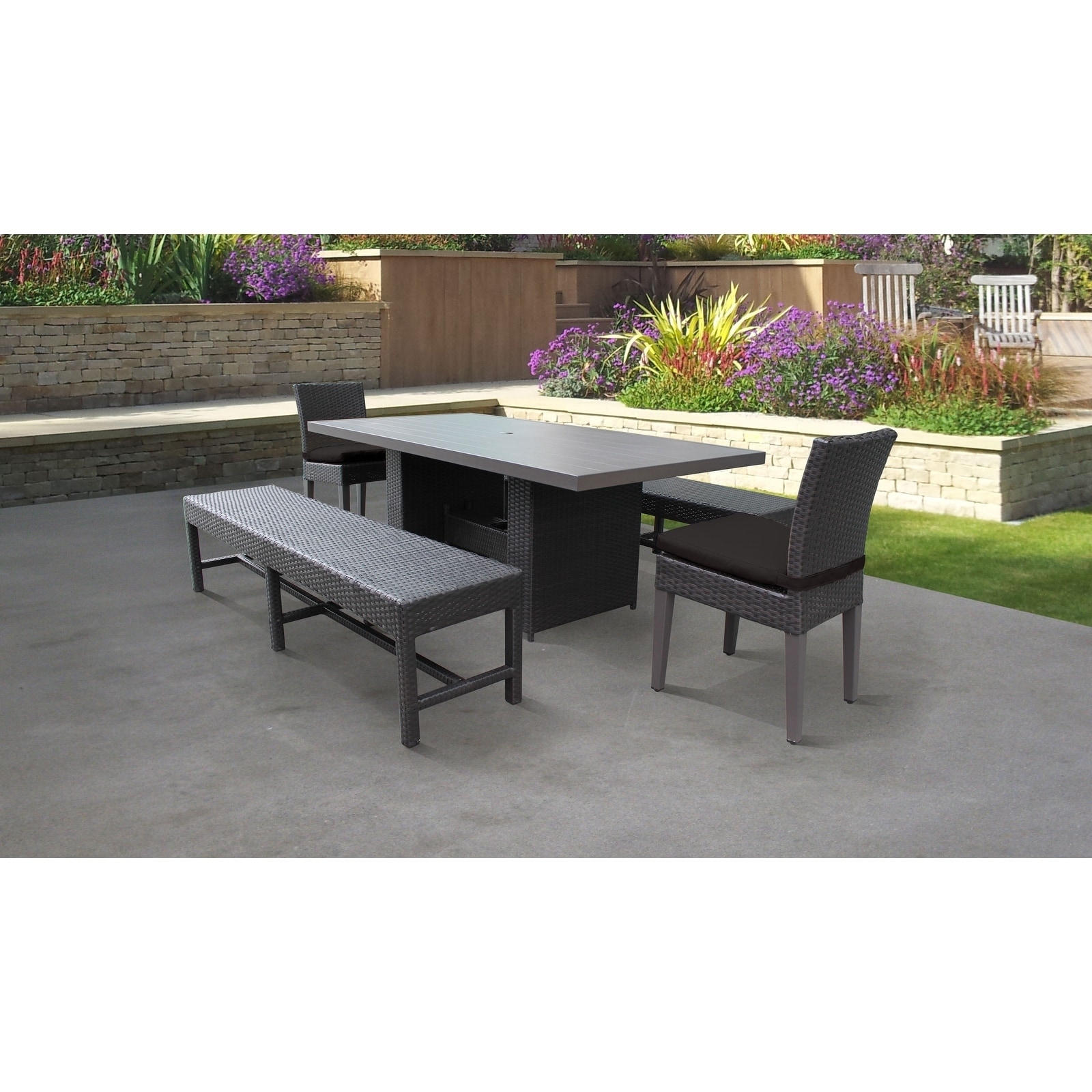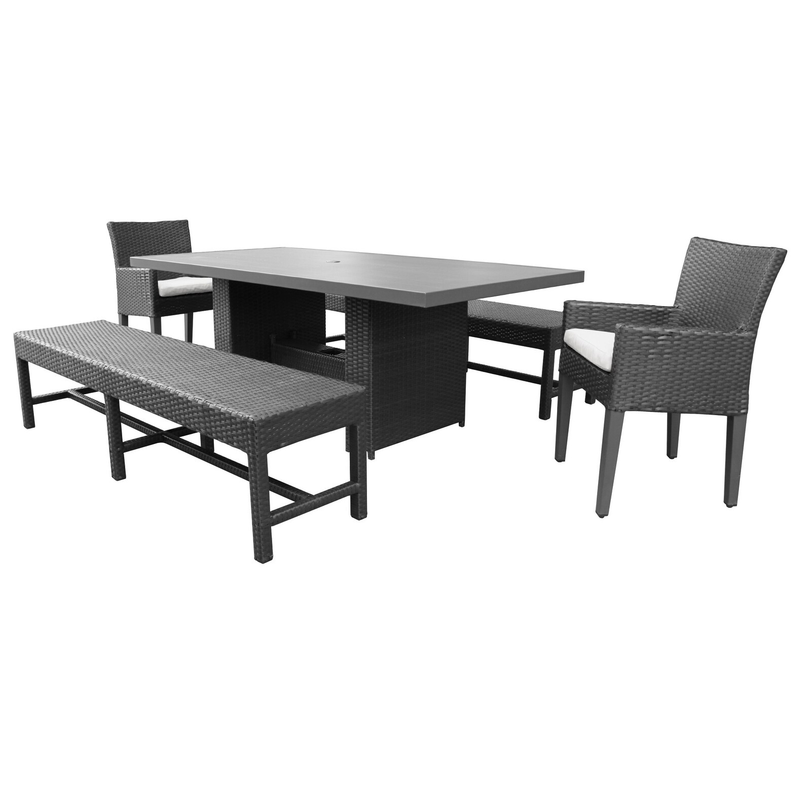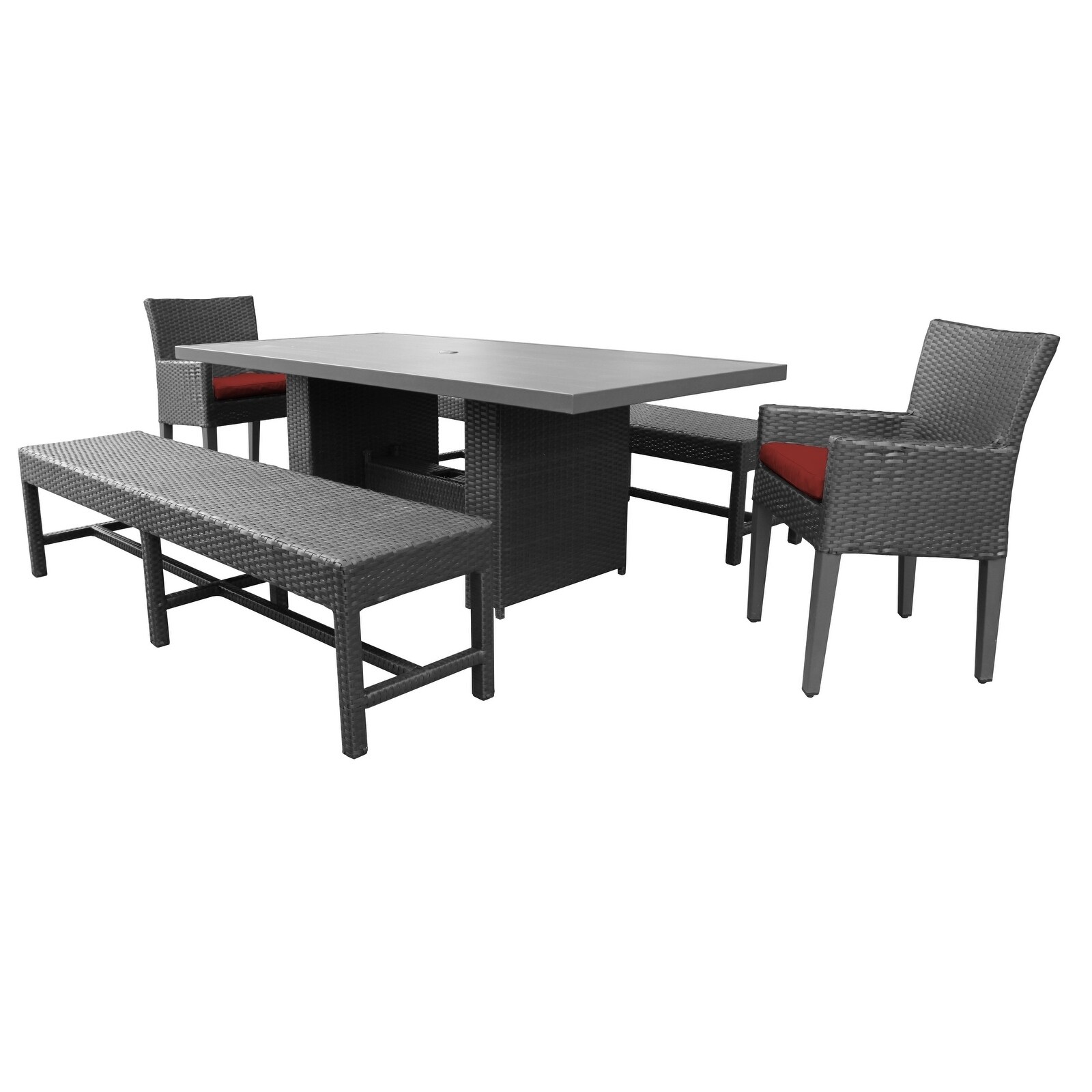 Belle Rectangular Outdoor Patio Dining Table with 2 Chairs w/ Arms and 2 Benches