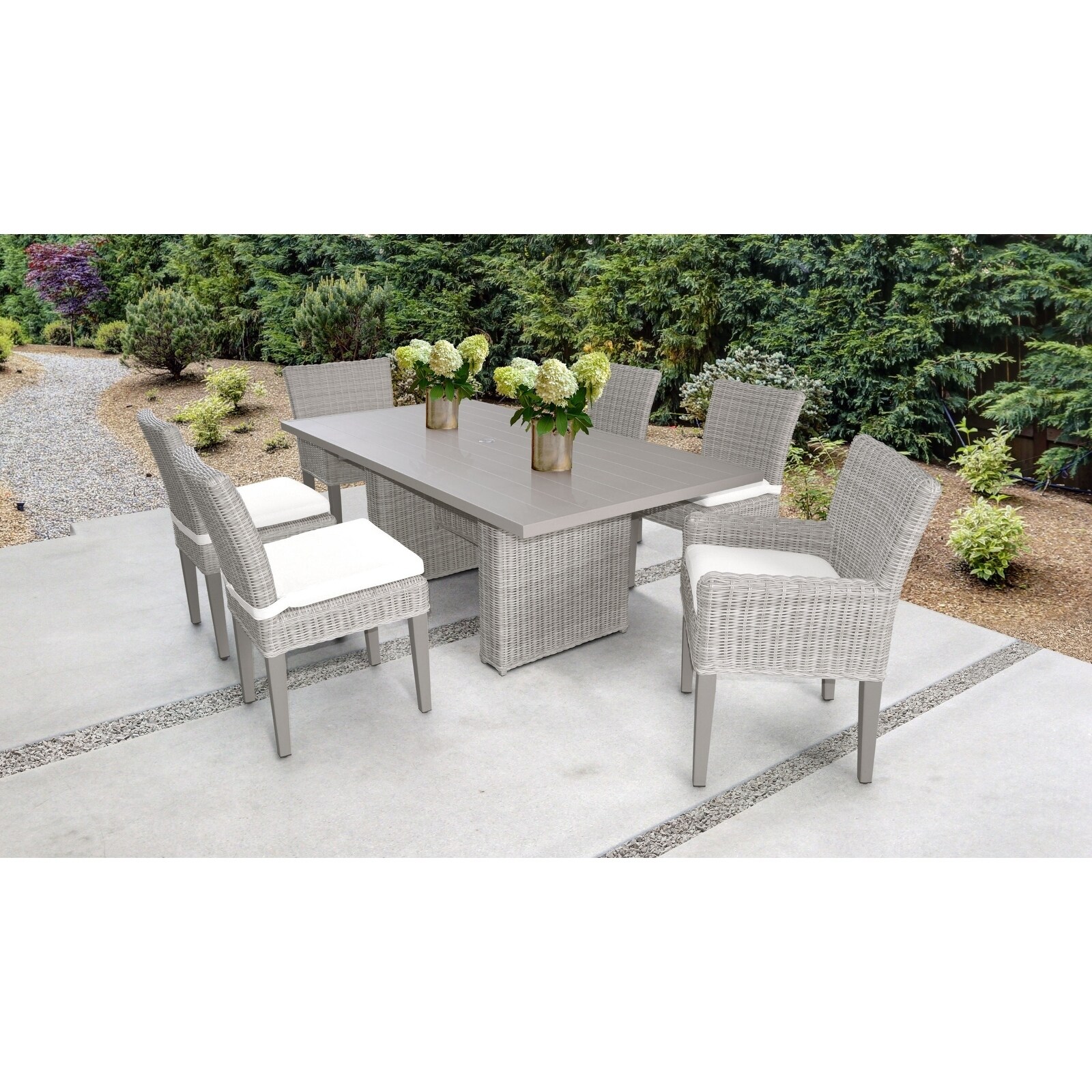 Coast Rectangular Outdoor Patio Dining Table with with 4 Armless Chairs and 2 Chairs w/ Arms