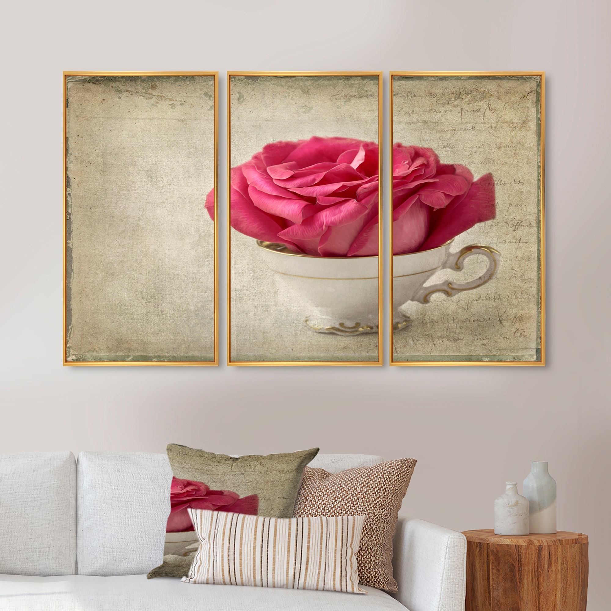 Designart "Red Rose in Cup Photography" Floral Framed Art Prints Set of 3 - 4 Colors of Frames