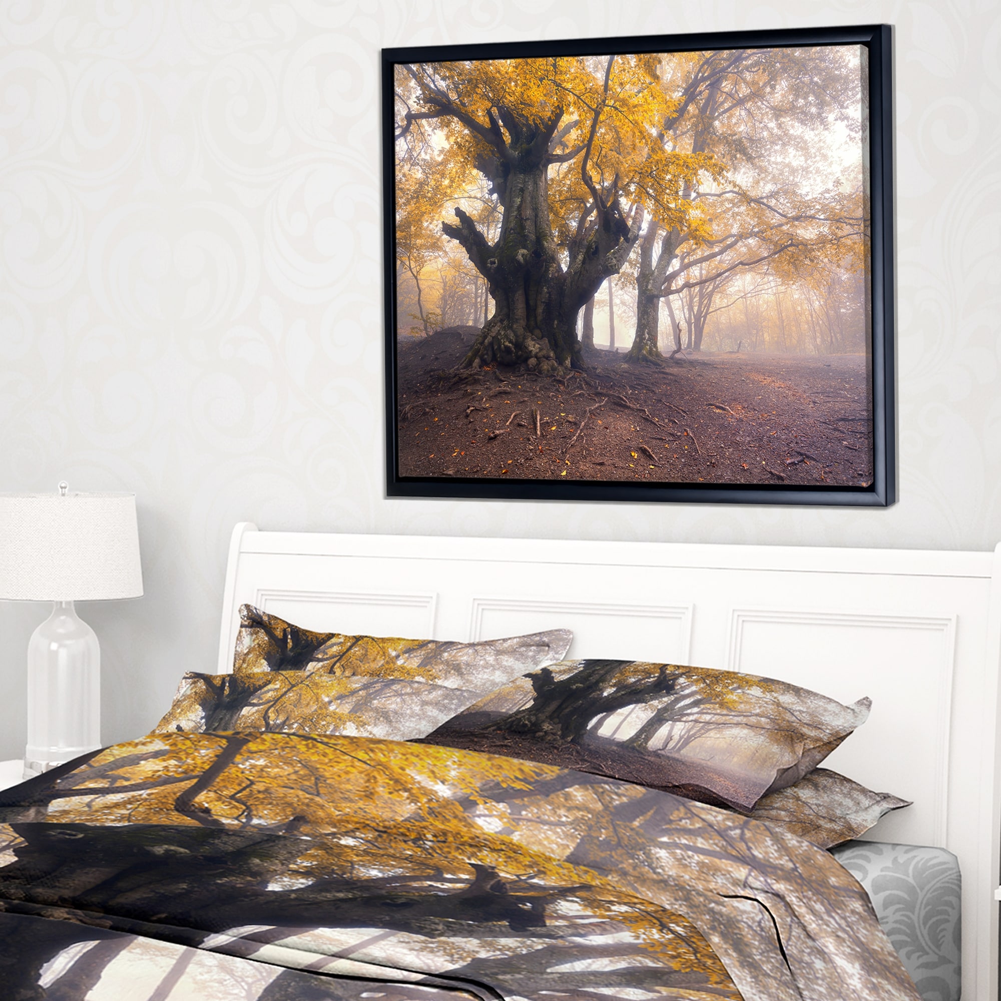 Designart "Dark Tree with Yellow Leaves" Landscape Photography Framed Canvas Print