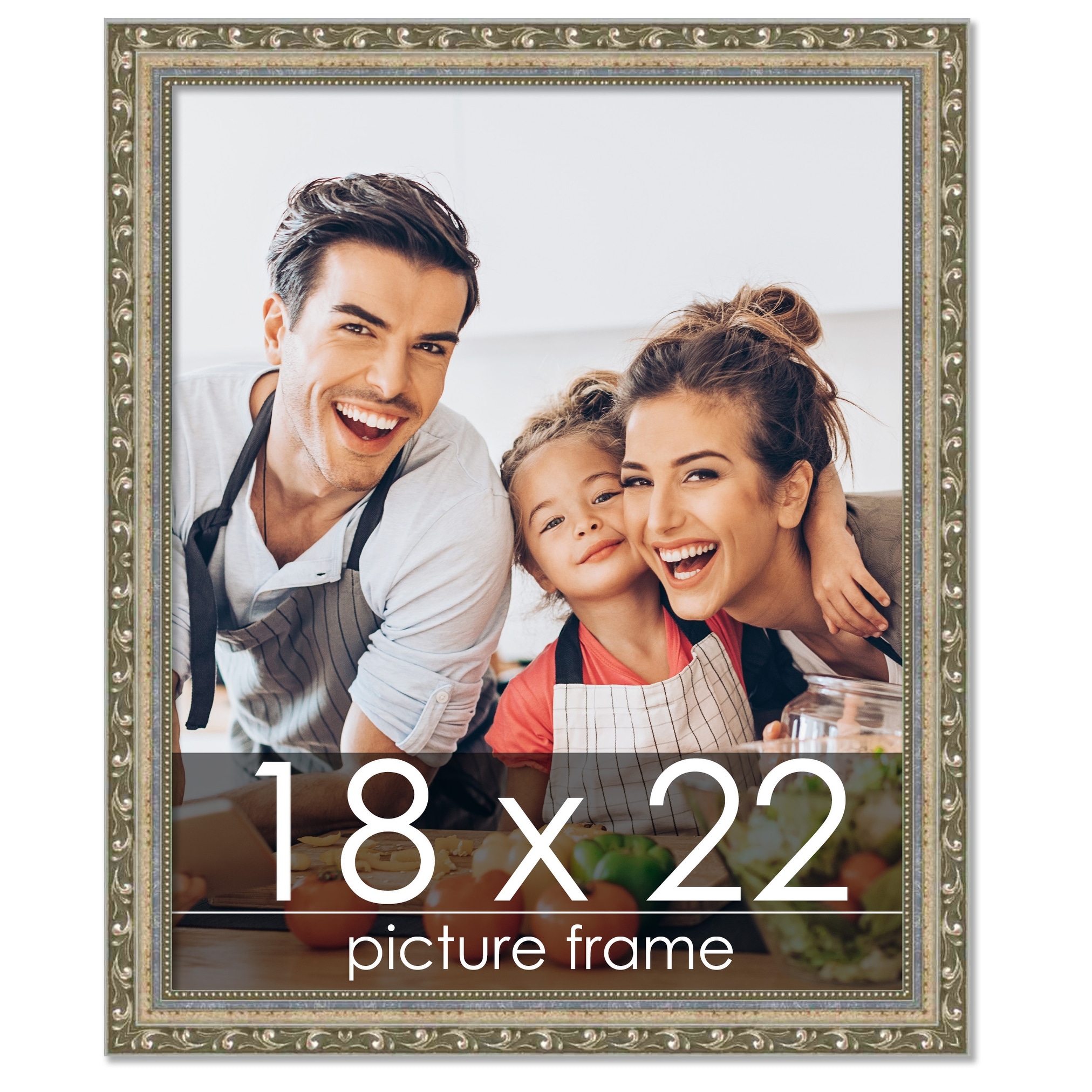 18x22 Frame Silver Ornate Antique Solid Complete Wood Picture Frame with UV Acrylic, Foam Board Backing, & Hardware