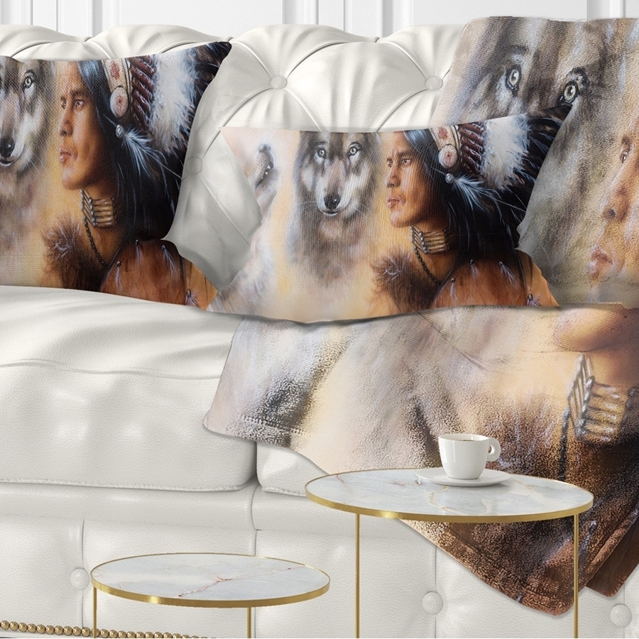 Designart 'Indian Warrior with Two Wolves' Animal Throw Pillow