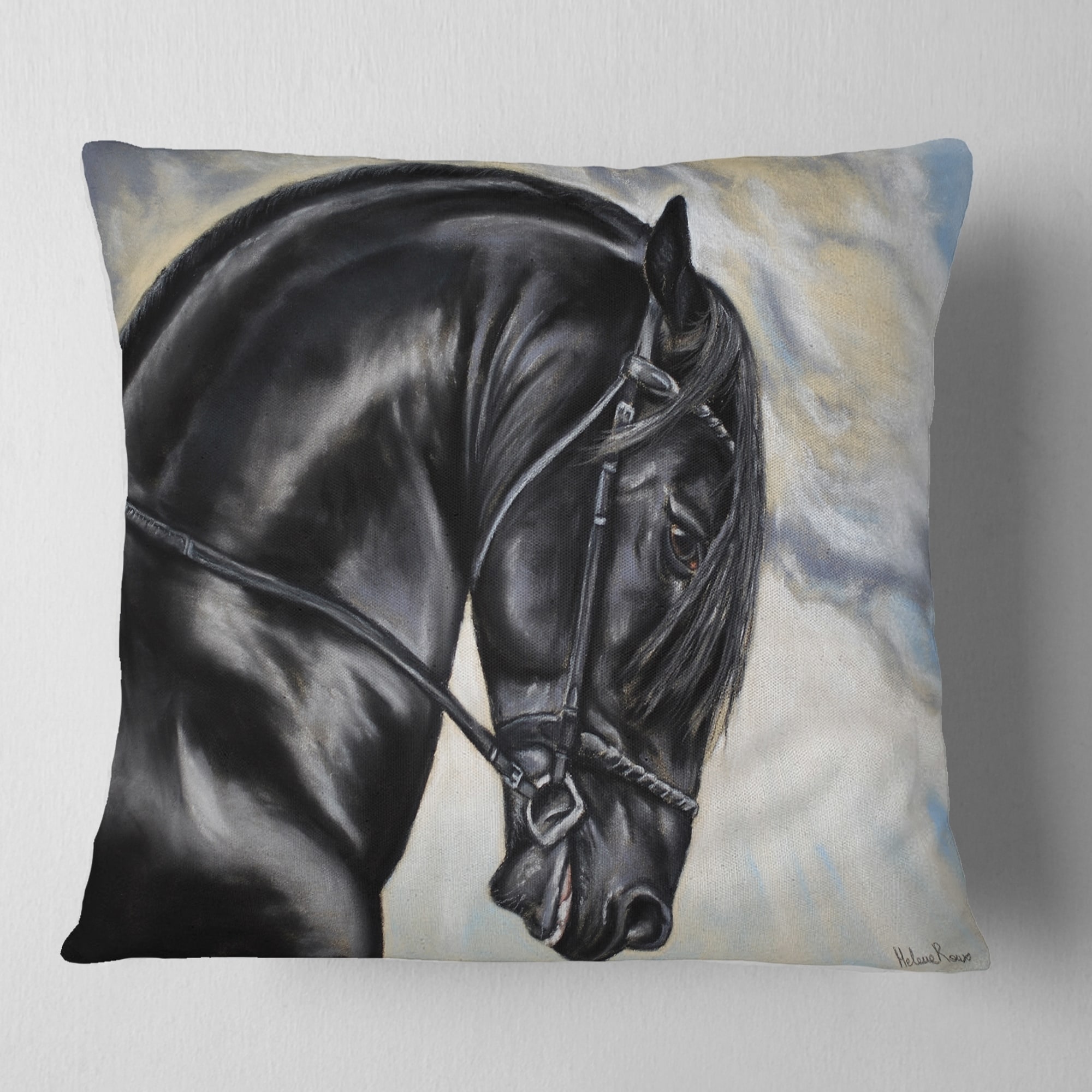 Designart 'Friesian Horse Painting' Animal Throw Pillow