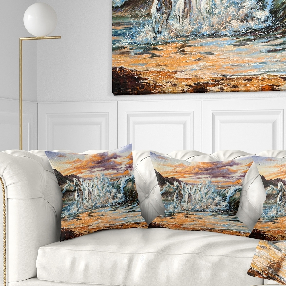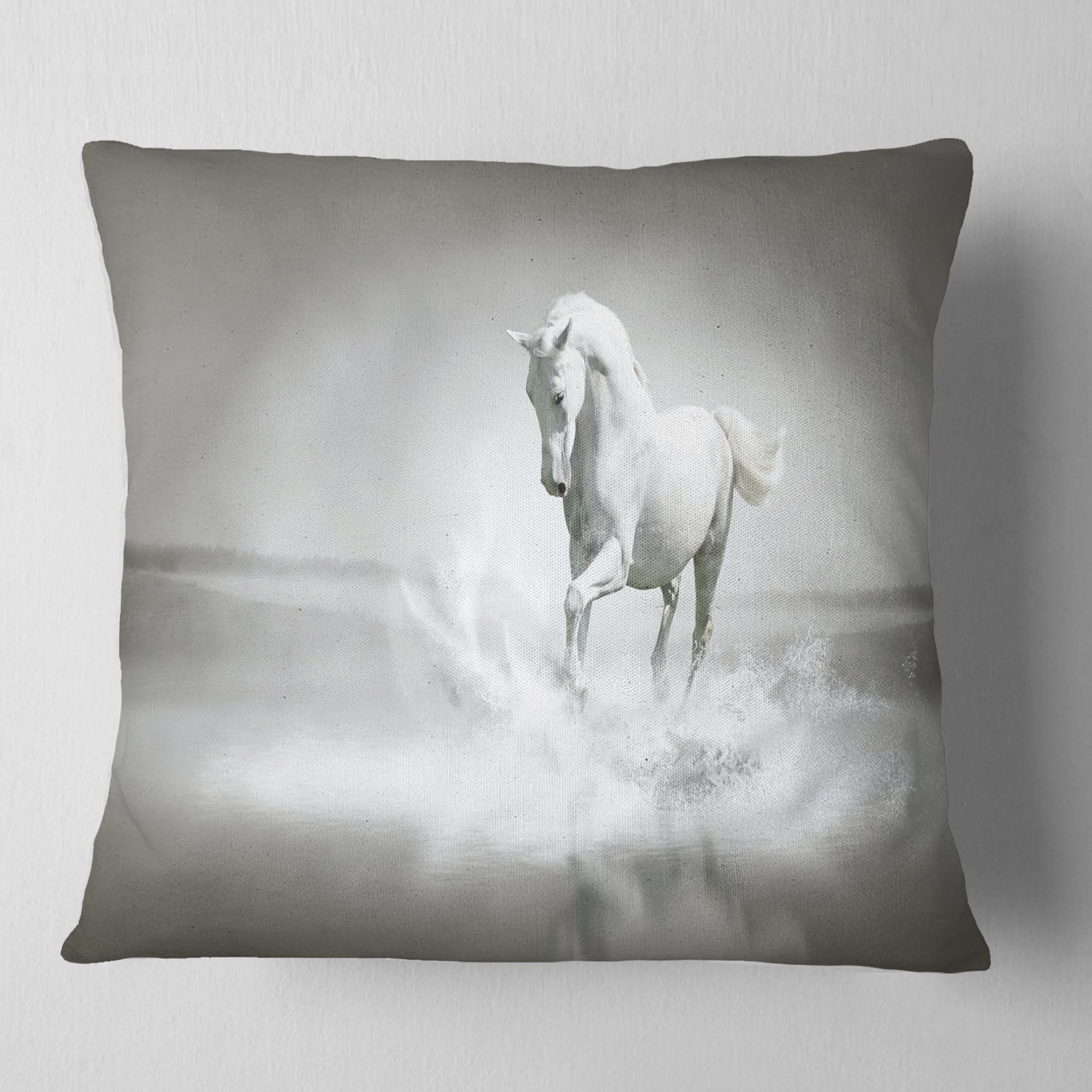 Designart 'White Horse Running in Water' Animal Throw Pillow