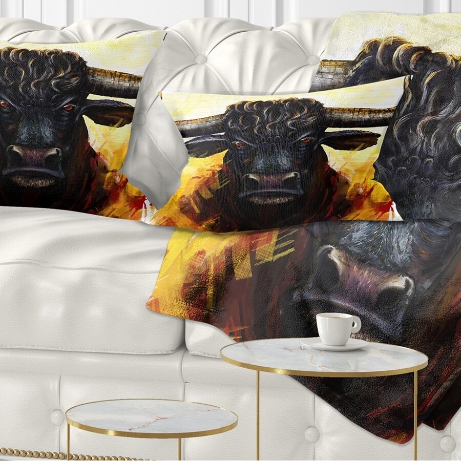 Designart 'Fierce Bull Illustration' Animal Throw Pillow