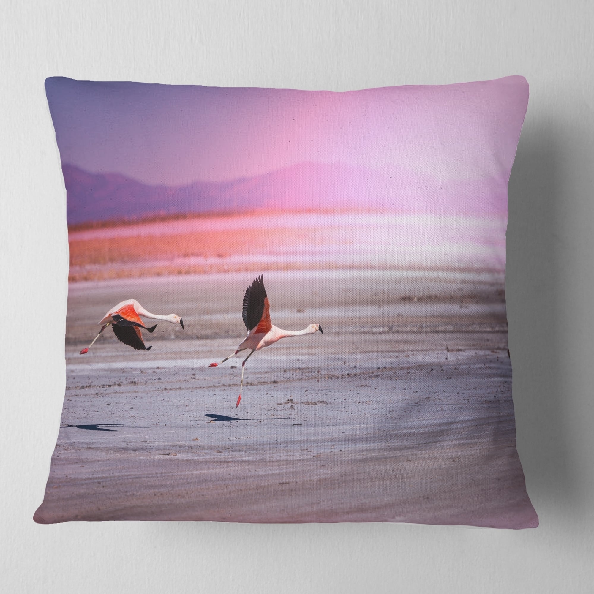 Designart 'Flying Pair of Cute Flamingos' Animal Throw Pillow