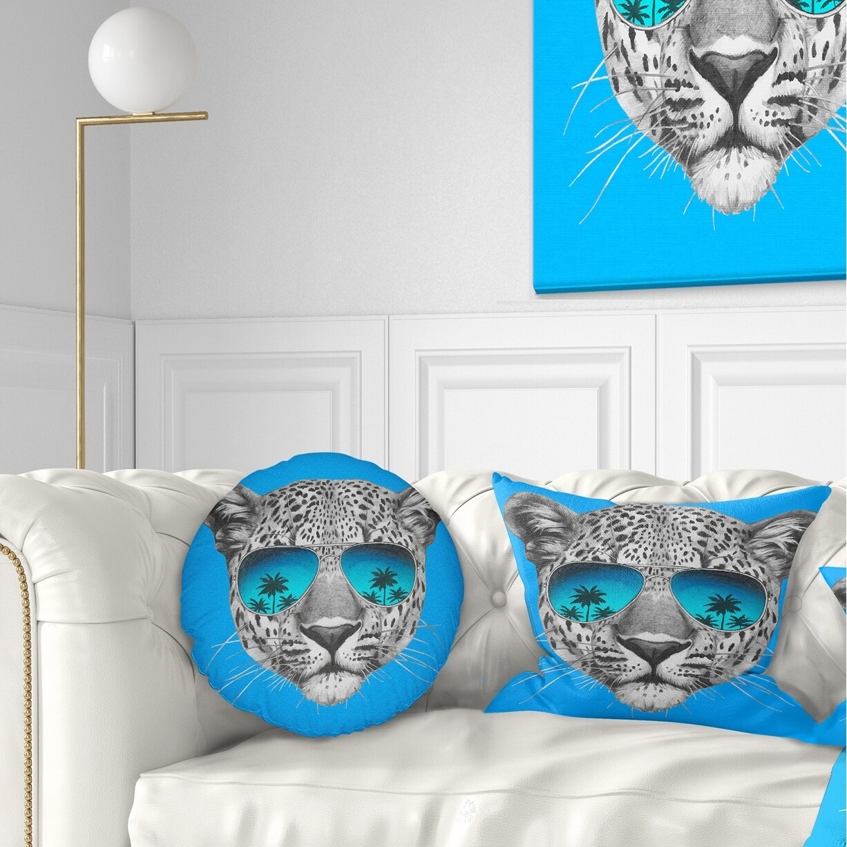 Designart 'Leopard with Mirror Sunglasses' Animal Throw Pillow