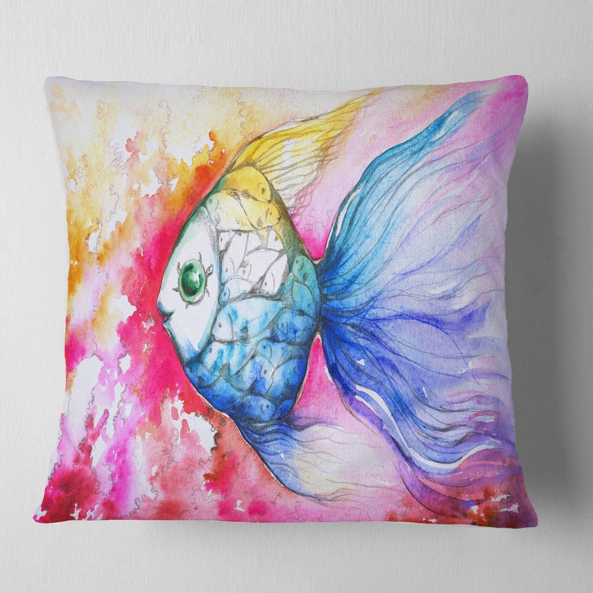 Designart 'Blue Fish on Red Background' Animal Throw Pillow