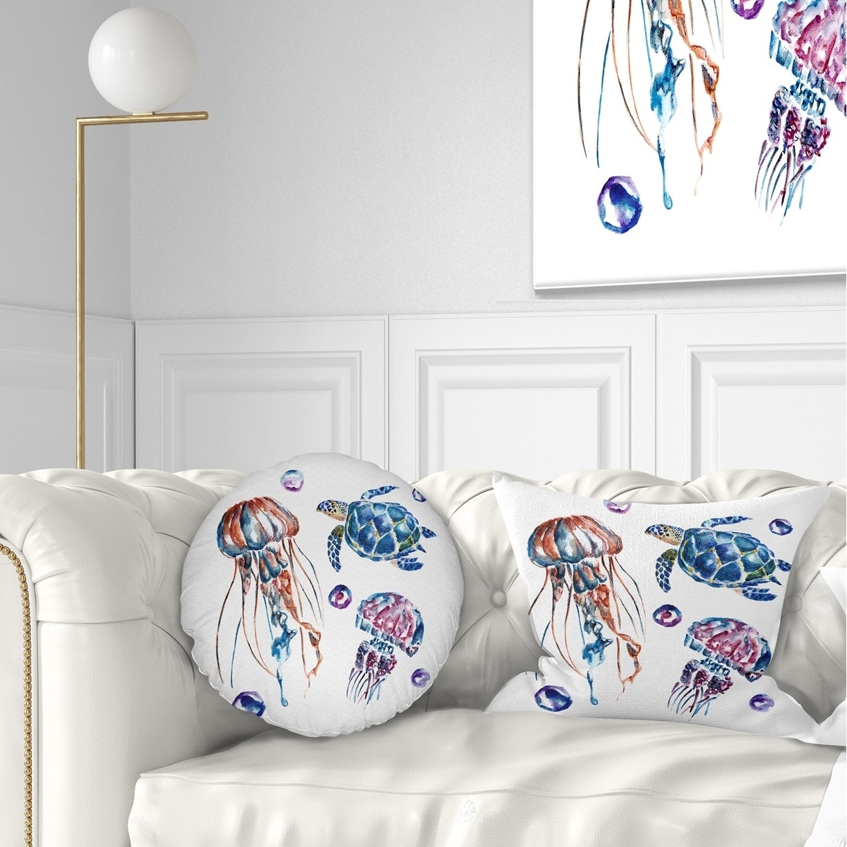 Designart 'Colorful Jellyfish and Turtles' Animal Throw Pillow